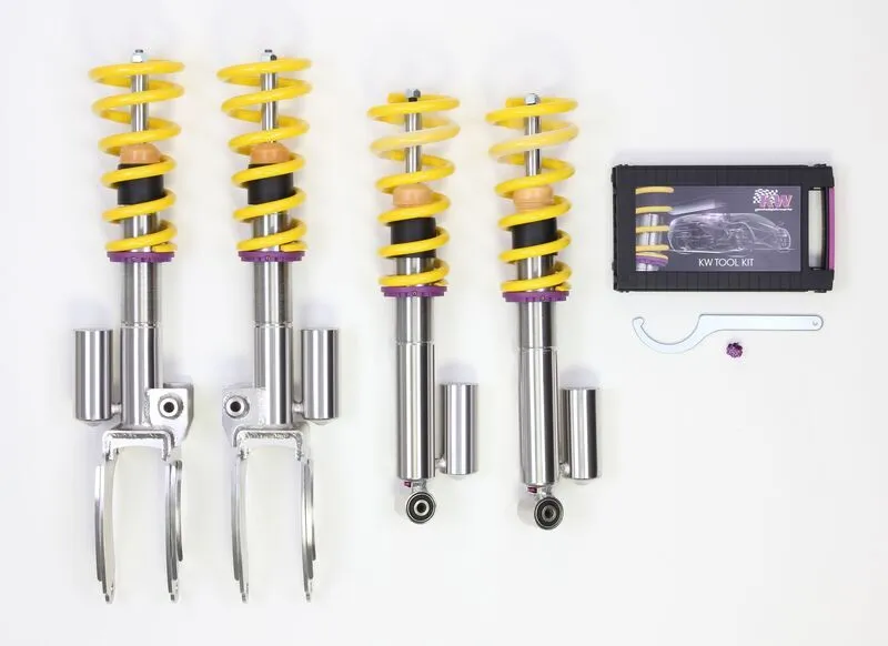 Similar to our racing coilovers from the KW Competition program, the KW coilovers Variant 3 inox-line can be adjusted independently in compression and rebound damping. This individual adjustment possibility is much appreciated by sports car manufacturers, tuners and drivers worldwide.