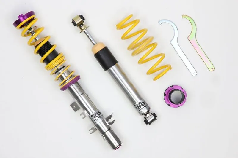 If you have already made your first performance modifications to your vehicle our KW coilovers Variant 3 will compliment your upgrades. The patented KW-valve technology for separate adjustment of rebound and compression damping allows you to individually setup your suspension.The adjustable KW bottom valve adjusts the low-speed range of the compression level in twelve clicks.