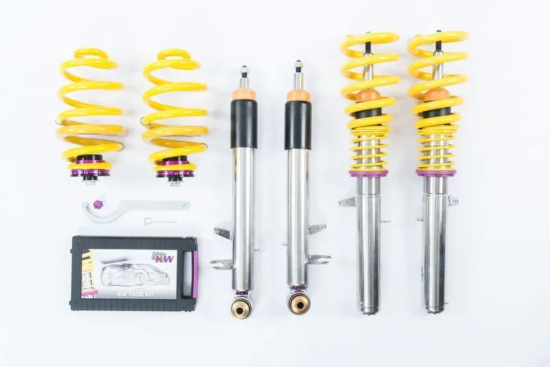 The KW coilover kit Variant 3 inox-line is the perfect accessory for performance-oriented drivers and tuning enthusiasts who put a great demand on their suspension. The separately rebound and compression damping adjustable dampers with their well-thought-through click adjustment allow a perfect setup. So it is easy to influence the steering behaviour, directional stability, tire grip and handling characteristics when driving on the limit.