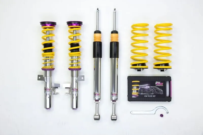 If you have already made your first performance modifications to your vehicle our KW coilovers Variant 3 will compliment your upgrades. The patented KW-valve technology for separate adjustment of rebound and compression damping allows you to individually setup your suspension.The adjustable KW bottom valve adjusts the low-speed range of the compression level in twelve clicks.