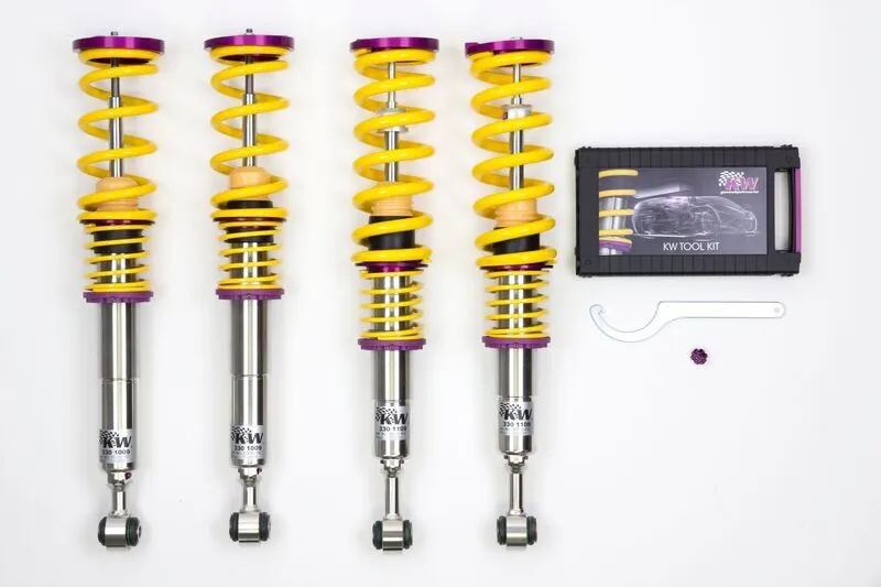 Similar to our racing coilovers from the KW Competition program, the KW coilovers Variant 3 inox-line can be adjusted independently in compression and rebound damping. This individual adjustment possibility is much appreciated by sports car manufacturers, tuners and drivers worldwide.