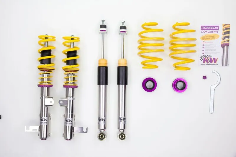 The KW coilover kit Variant 3 inox-line is the perfect accessory for performance-oriented drivers and tuning enthusiasts who put a great demand on their suspension. The separately rebound and compression damping adjustable dampers with their well-thought-through click adjustment allow a perfect setup. So it is easy to influence the steering behaviour, directional stability, tire grip and handling characteristics when driving on the limit.