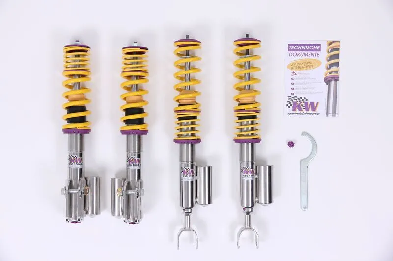 Similar to our racing coilovers from the KW Competition program, the KW coilovers Variant 3 inox-line can be adjusted independently in compression and rebound damping. This individual adjustment possibility is much appreciated by sports car manufacturers, tuners and drivers worldwide.