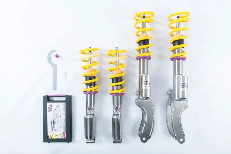 Similar to our racing coilovers from the KW Competition program, the KW coilovers Variant 3 inox-line can be adjusted independently in compression and rebound damping. This individual adjustment possibility is much appreciated by sports car manufacturers, tuners and drivers worldwide.