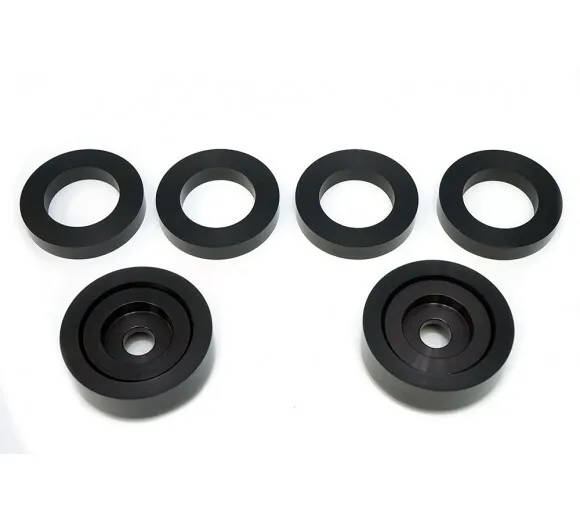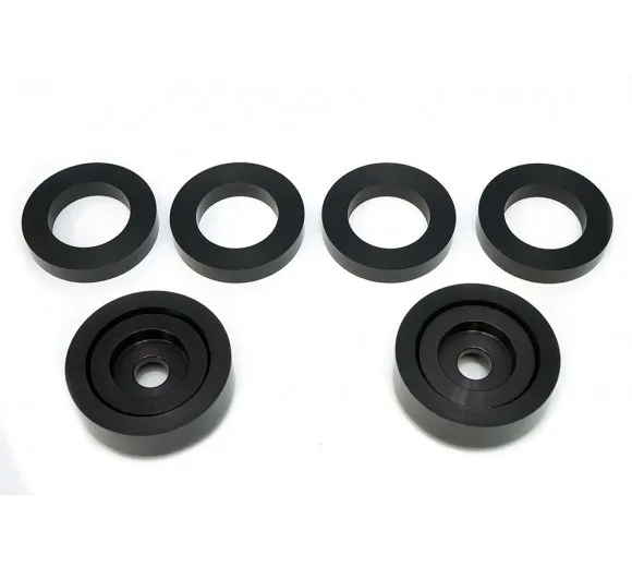 The Kartboy Rear Differential Carrier Wedge Lock Systrem has been designed to provide more reinforcement to the rear differential which adds a better feel, and more stability to the rear differntial under harsh driving conditions. This kit includes 4 machined aluminum inserts to lock in the rear differential bushing inserts, as well as 4 Carrier inserts, all in a black finish.