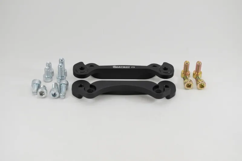 The Kartboy V2 Big Brake Adapters have been designed to allow you to convert to the larger rear red 2-pot or gold Brembo rear calipers on vehicles with factory single calipers. This is a great option for those of you who want better braking performance from your vehicle without having to upgrade to a larger style aftermarket big brake kit where some examples also require you to change your wheel setup.