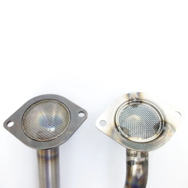 The obvious big change is that the tube has no bend. No bend means no restriction, and even better coming from the OEM tube because it uses a more restrictive pinch bend. The ID of the tube has been increased, and so has the thickness. The angle of the tube points it directly at the inlet into the block. Like our EJ engine Ultimate Oil Pickup, this one also uses a screen to match the OEM spec opening size of the mesh. We also use a higher strength screen material. The screen area has been increased over 31%, which reduces the restriction and stress on the screen. Our screen is lightly pressed and welded into place, assuring that the wire does not get stressed or heat damaged. TIG welding throughout assures proper weld penetration and quality. The material is 4130 Alloy Steel to provide a further increase in strength over the brazed stamped steel OEM version. The units have been pressure tested to 150psi over the face of the screen without issue.