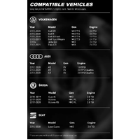 • 2013 - 2016 Audi A3 8V (4D Hatch) Sportback 1.8 TFSI Ambition - CJSA 1.8L Turbo Petrol FWD (132kW)
