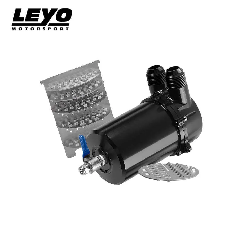 Filtration begins immediately as oil vapor enters the uniquely designed LEYO Oil Catch Can filtration system, allowing pressurized oil vapor to enter freely, accelerates condensation, effectively traps oil with specially designed perforated stainless steel plates before cleaner gases recirculates back into the intake tract. Made with T304 stainless steel and high grade aluminum ensuring rust free, leak free operation. LEYO Oil Catch Can Kit had also includedpre-installed drain valve, protecting your pride and joy has never been easier.