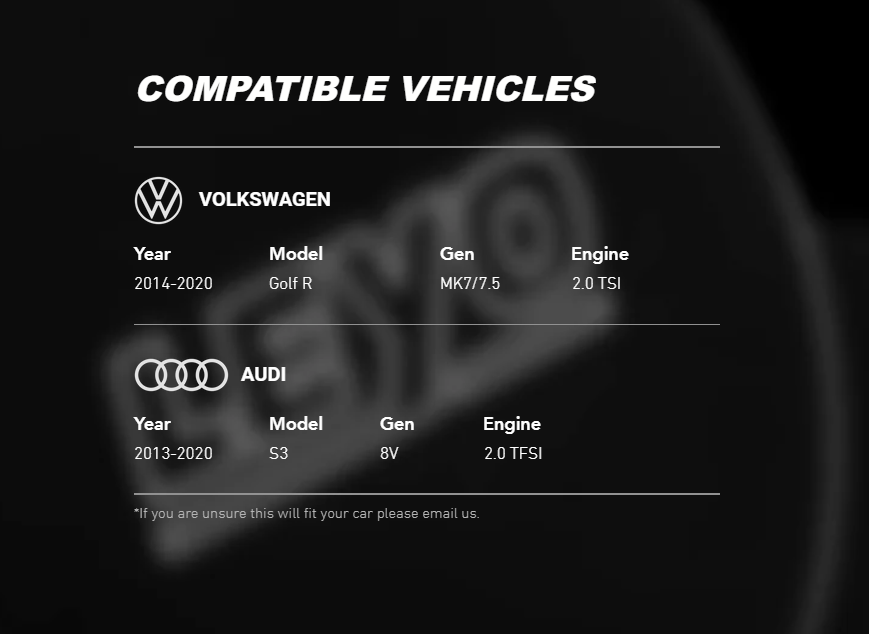 • 2014 - 2016 Audi S3 8V (4D Sedan) 2.0 TFSI Quattro - CJXF 2.0L Turbo Petrol AWD (210kW)