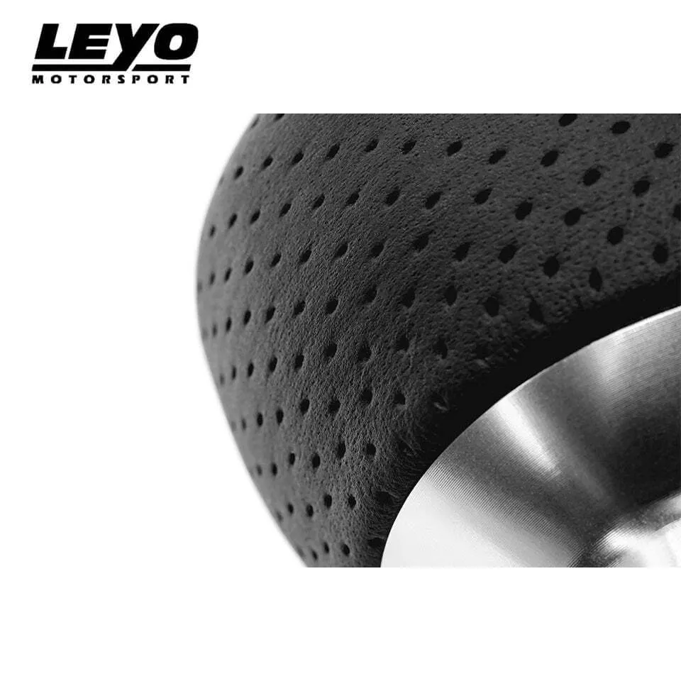 The main knob is CNCd from a single block of billet aluminum and then undergoes a six stage hand polishing. It is then anodized to offer protection to the aluminum then finally sent off to expert craftsman to painstakingly wrap each shift knob in premium Nappa leather.