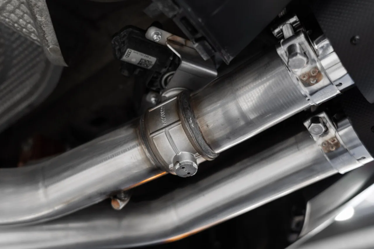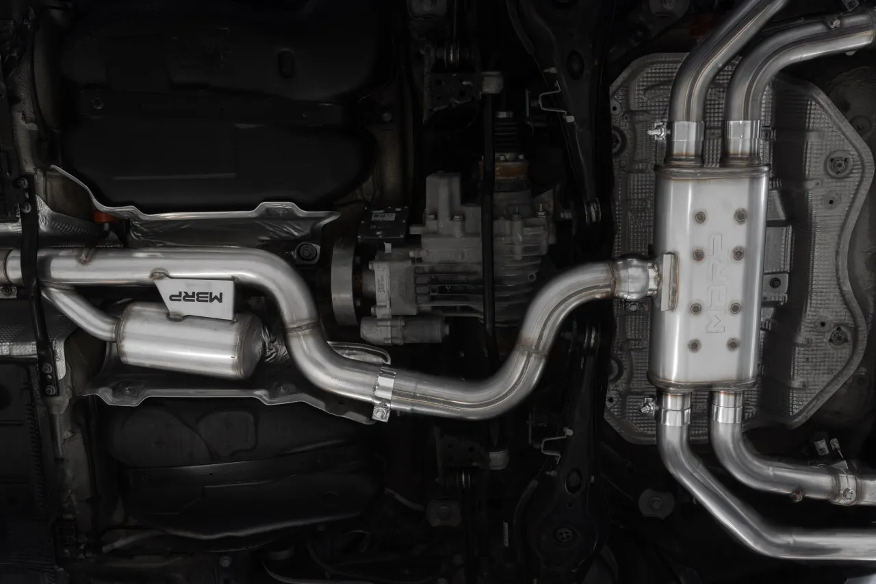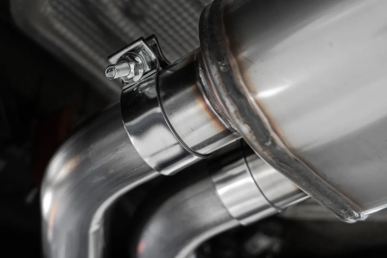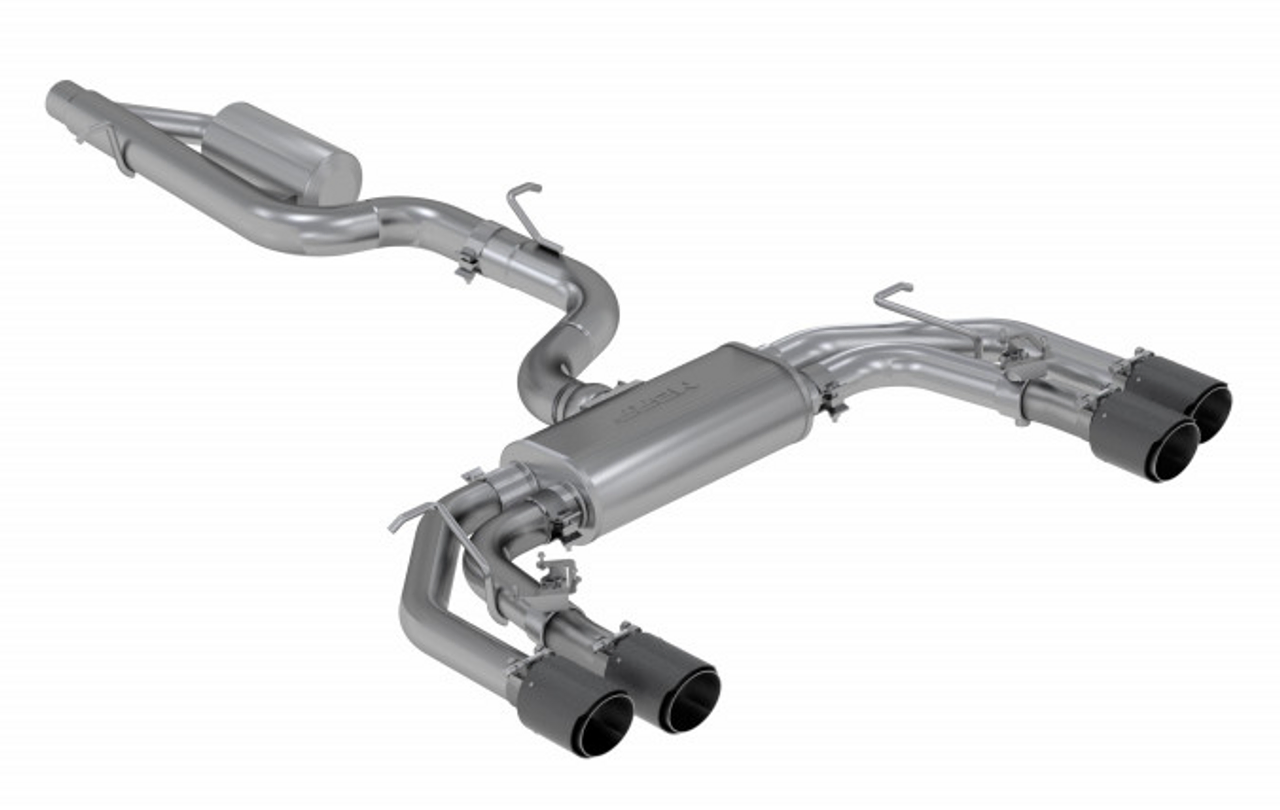 3" Cat Back Quad Split Rear Exit, T304 Stainless Steel w/ CF Tips