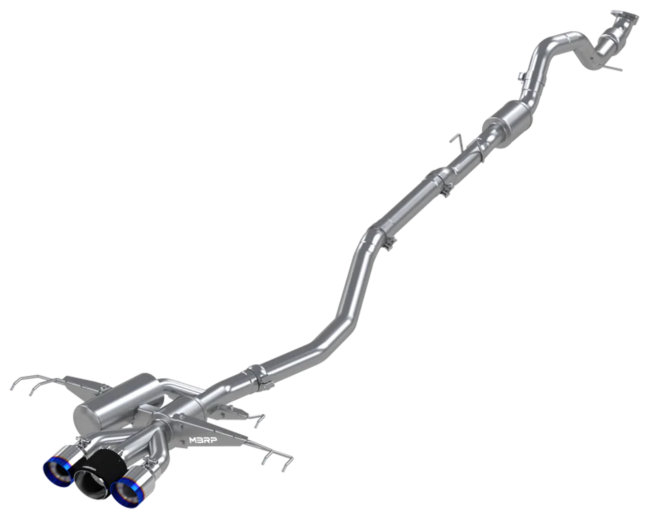 T304 Stainless Steel, 3.0" Cat-Back, Triple Center Outlet, w/ Burnt End & Carbon Tips