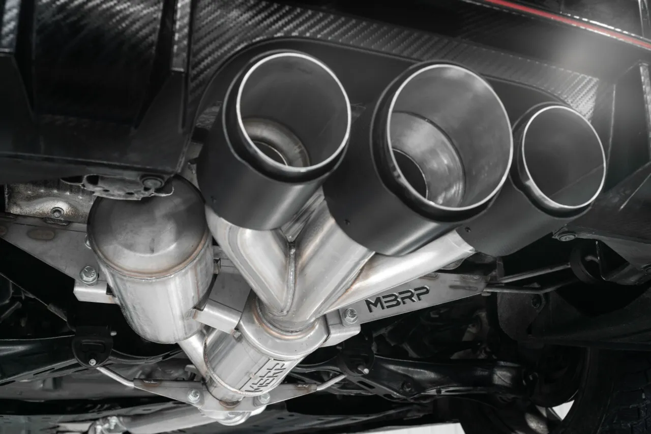 3" Cat-Back, Triple Center Outlet, T304 Stainless Steel, w/ Carbon Fiber Tips