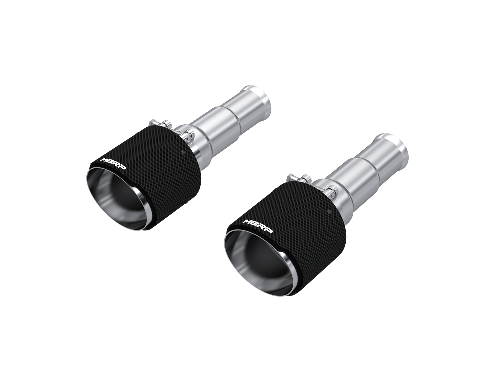 The exhaust tip is the crowning touch to your performance exhaust. It is your opportunity to really show off your personal style. That's why MBRP offers such a wide assortment of high quality, bolt on tips, because everybody has their own idea of style. MBRP offers T304 polished stainless, Black coated, Burnt End and Carbon Fiber tip options in various sizes. These Tips are vehicle specific.