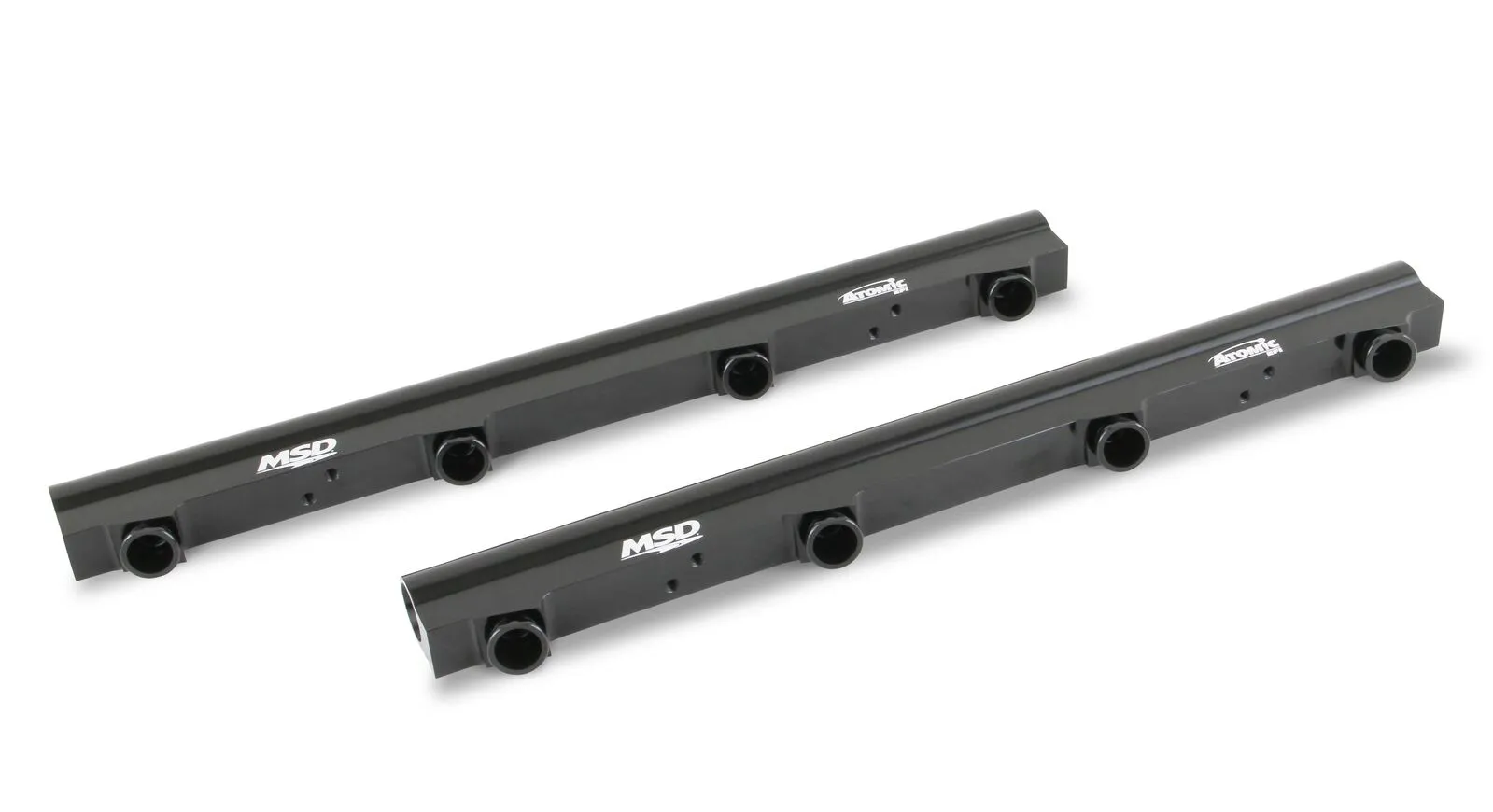 MSD's new Atomic EFI billet fuel rails enhance the great looks of your Atomic AirForce intake manifold._x000D_ _x000D_ Available as rails only, or as complete kits that include all necessary plumbing, these fuel rails are a perfect addition to your engine bay. The bright dip, black anodized finish with laser etched logos will look great for years._x000D_ _x000D_ MSD Atomic fuel rails feature a 5/8" diameter fuel passage that provides the flow capacity necessary to fuel high horsepower applications making them the perfect match for your Atomic AirForce intake manifold.