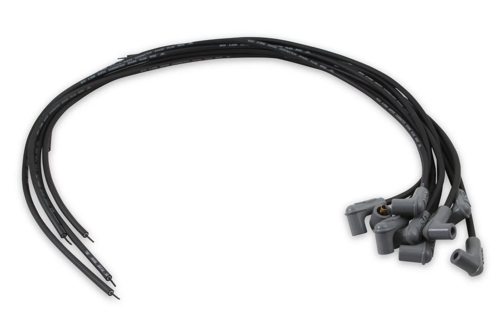 Our Universal spark plug wire sets come with the spark plug terminal and boot installed with the other end open. Distributor cap boots and terminals are included so you can cut the wire to the desired length, then install the terminal with the supplied Mini-Stripper-Crimper. It's a little more work, but in the end it will be worth it.