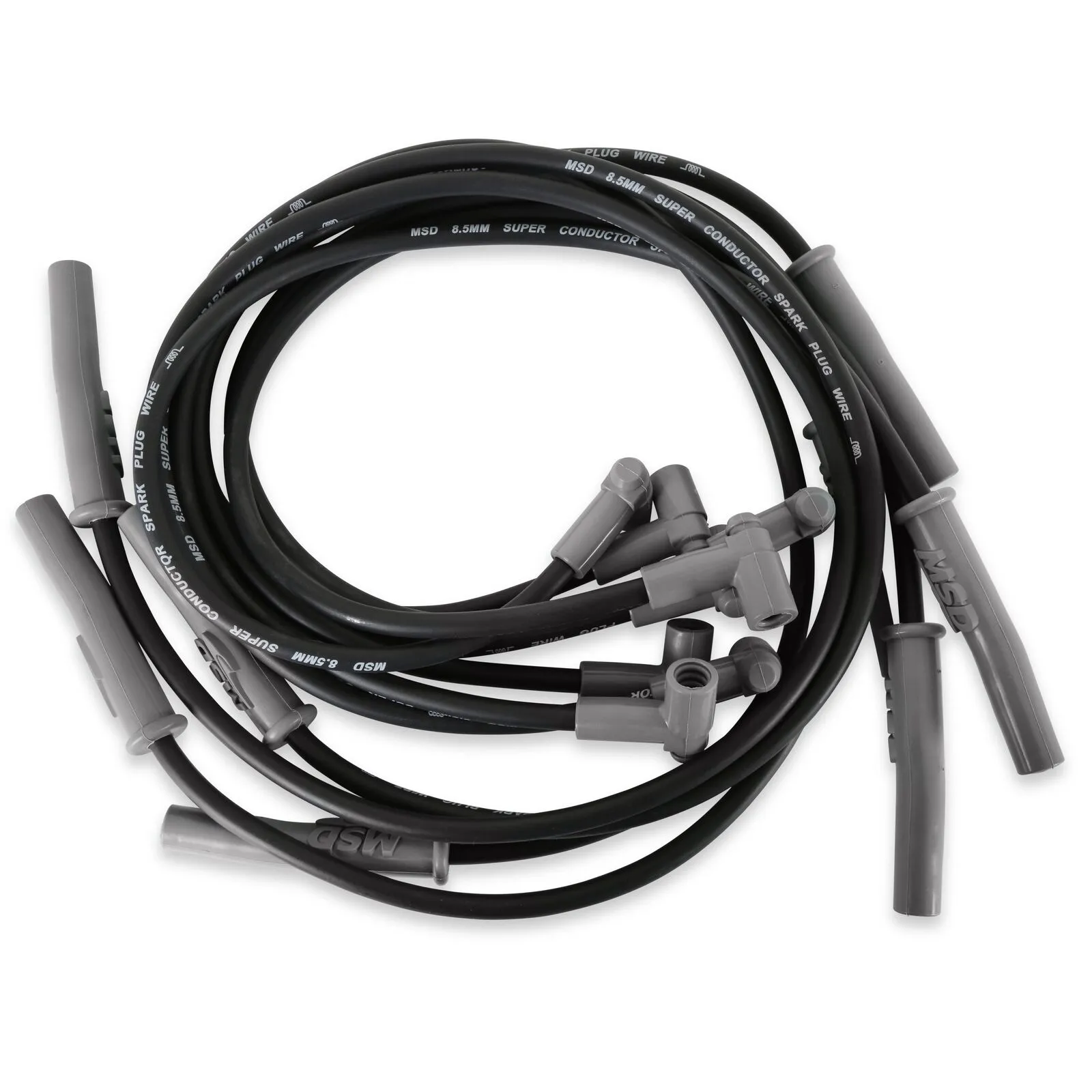 Engineered from the inside out, the 8.5 offers everything you have ever wanted in a wire; incredibly low resistance without electronic interference! In a single 12 inch length of Super Conductor Wire there is only 40 - 50 ohms of resistance! That is the lowest resistance of any helically wound wire. To accomplish this, we use a copper alloy conductor due to it's great voltage carrying capabilities. The low resistance results in less loss in spark energy so more reaches the spark plug. The conductor is wound extremely tight around a special center core. So tight in fact, that there is over 40 feet of conductor wrapped into a single foot of plug wire. This winding procedure, combined with a ferro-magnetic impregnated center core, produces an extremely effective Electro Magnetic Interference (EMI) "choke". This choke, or suppression capability, keeps the EMI inside the wire where it cannot interfere with other electronics on your vehicle. The outer sleeve that surrounds the conductor assembly is just as impressive. A proprietary blend of silicone and synthetic material produce a sleeve that is highly resistant to high heat as well as abrasion and tears. The MSD's 8.5mm spark plug terminals feature Dual Crimp terminals. As the name implies, the terminals feature two crimps; one for the sleeve of the wire and another separate crimp to grasp the conductor. The MSD's 8.5mm spark plug terminals feature Dual Crimp terminals. As the name implies, the terminals feature two crimps; one for the sleeve of the wire and another separate crimp to grasp the conductor.