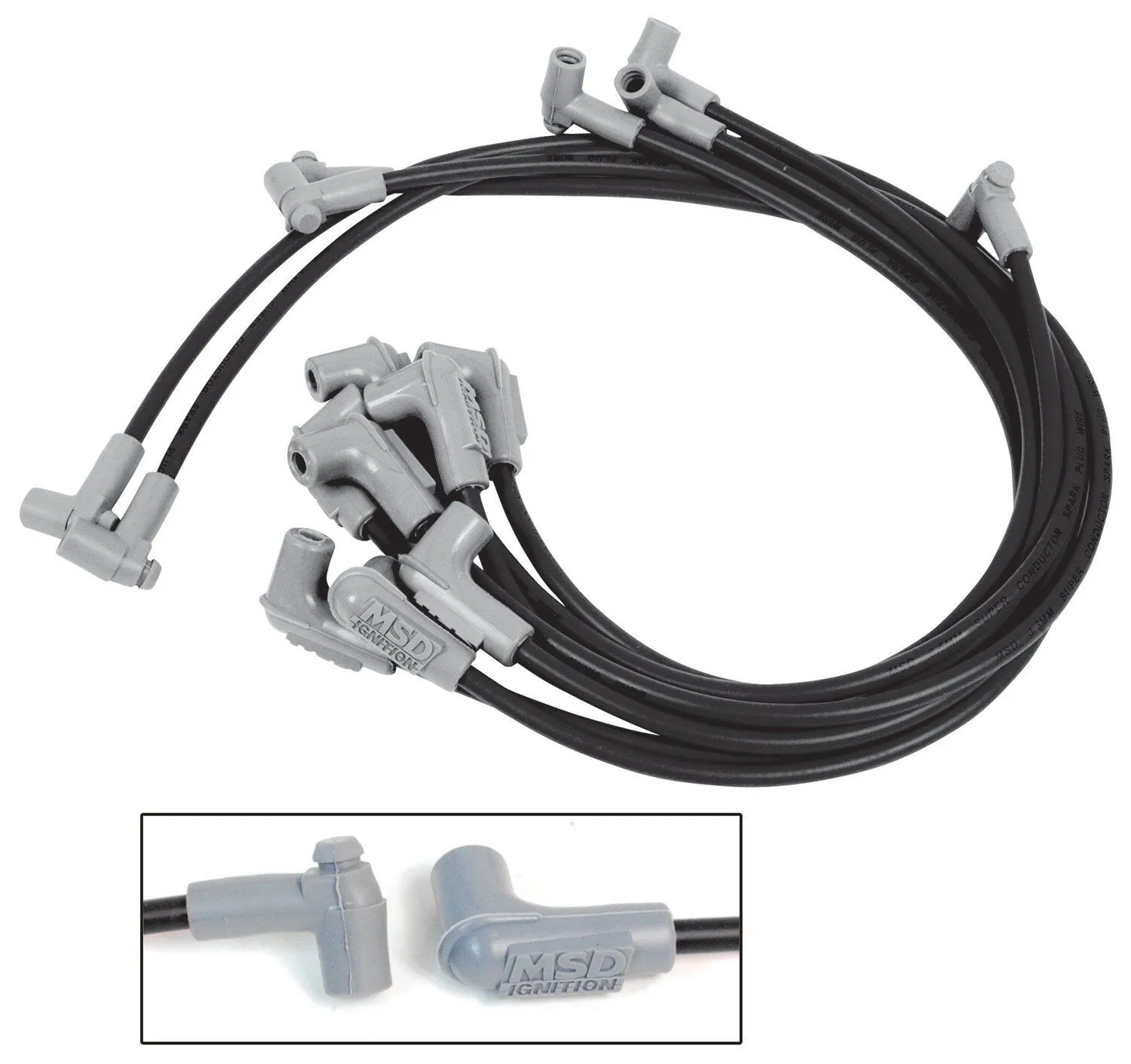 Engineered from the inside out, the 8.5 offers everything you have ever wanted in a wire; incredibly low resistance without electronic interference! In a single 12 inch length of Super Conductor Wire there is only 40 - 50 ohms of resistance! That is the lowest resistance of any helically wound wire. To accomplish this, we use a copper alloy conductor due to it's great voltage carrying capabilities. The low resistance results in less loss in spark energy so more reaches the spark plug. The conductor is wound extremely tight around a special center core. So tight in fact, that there is over 40 feet of conductor wrapped into a single foot of plug wire. This winding procedure, combined with a ferro-magnetic impregnated center core, produces an extremely effective Electro Magnetic Interference (EMI) "choke". This choke, or suppression capability, keeps the EMI inside the wire where it cannot interfere with other electronics on your vehicle. The outer sleeve that surrounds the conductor assembly is just as impressive. A proprietary blend of silicone and synthetic material produce a sleeve that is highly resistant to high heat as well as abrasion and tears. The MSD's 8.5mm spark plug terminals feature Dual Crimp terminals. As the name implies, the terminals feature two crimps; one for the sleeve of the wire and another separate crimp to grasp the conductor. The MSD's 8.5mm spark plug terminals feature Dual Crimp terminals. As the name implies, the terminals feature two crimps; one for the sleeve of the wire and another separate crimp to grasp the conductor.