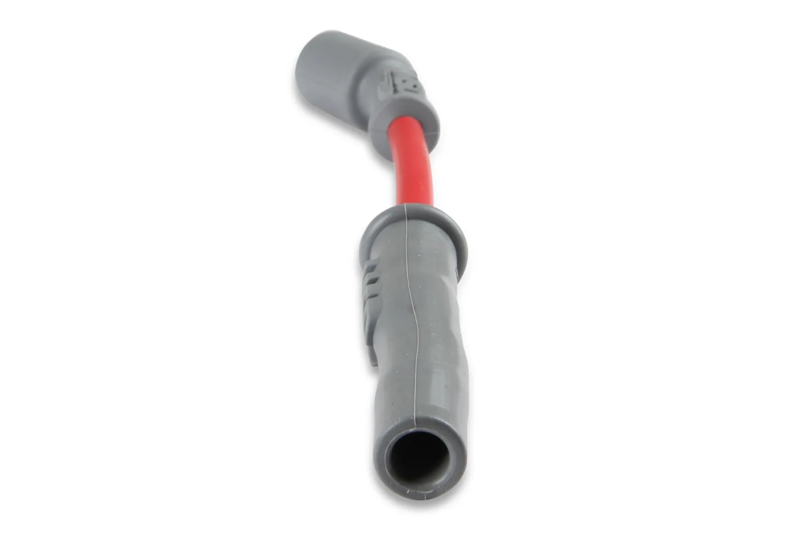 To accomplish this, we use a copper alloy conductor due to its great voltage carrying capabilities. The low resistance results in less loss in spark energy so more reaches the spark plug. The conductor is wound extremely tight around a special center core. So tight in fact, that there is over 40 feet of conductor wrapped into a single foot of plug wire. This winding procedure, combined with a ferromagnetic impregnated center core, produces an extremely effective Electro Magnetic Interference (EMI) "choke". This choke, or suppression capability, keeps the EMI inside the wire where it cannot interfere with other electronics on your vehicle. The outer sleeve that surrounds the conductor assembly is just as impressive. A proprietary blend of silicone and synthetic material produces a sleeve that is highly resistant to high heat as well as abrasion and tears.