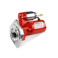 Our DynaForce Starter is designed to crank over the highest compression engines on a hot day in Death Valley. Not that too many race cars are sitting in Death Valley, but it's good to know that you have the oomph to make it happen. The DynaForce Starter features all new components beginning with a three horsepower motor. This power is used to crank over the reduced 4.4:1 gear set to deliver great torque to the engine's ring gear to get the engine turning. The downsized housing clears most headers and oil pans, but just in case, we made the billet mount so it can be clocked in different positions to help in tight applications. The assembly is powder coated MSD red and will stay looking good, even though it's underneath your car.