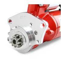 Our DynaForce Starter is designed to crank over the highest compression engines on a hot day in Death Valley. Not that too many race cars are sitting in Death Valley, but it's good to know that you have the oomph to make it happen. The three horsepower motor is used to crank over the reduced 4.4:1 gear set to deliver great torque to the engine's ring gear to get the engine turning. The armature is balanced during assembly and is guided by two ball bearings for smooth engagement and thousands of starts. The downsized housing clears most headers and oil pans. The assembly is powder coated MSD red and will stay looking good, even though it's underneath your car.