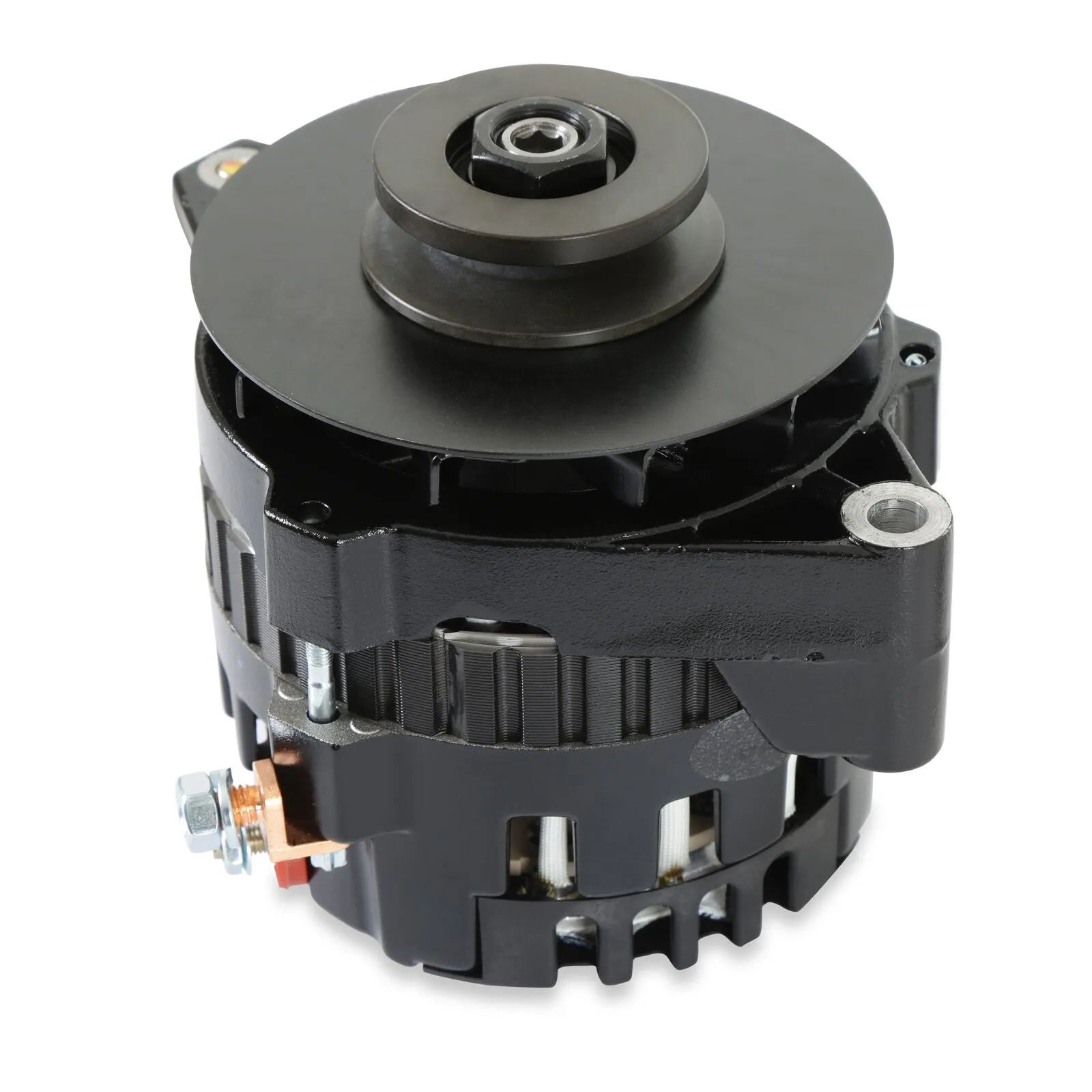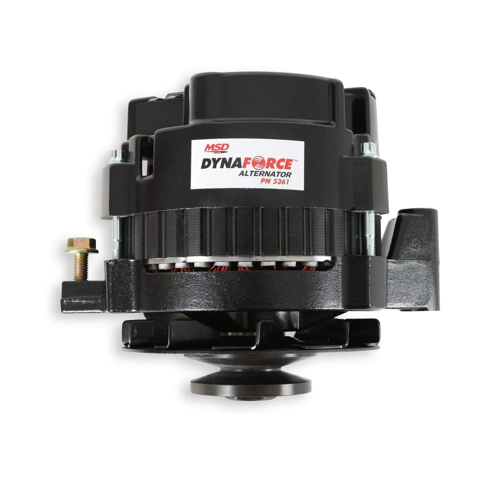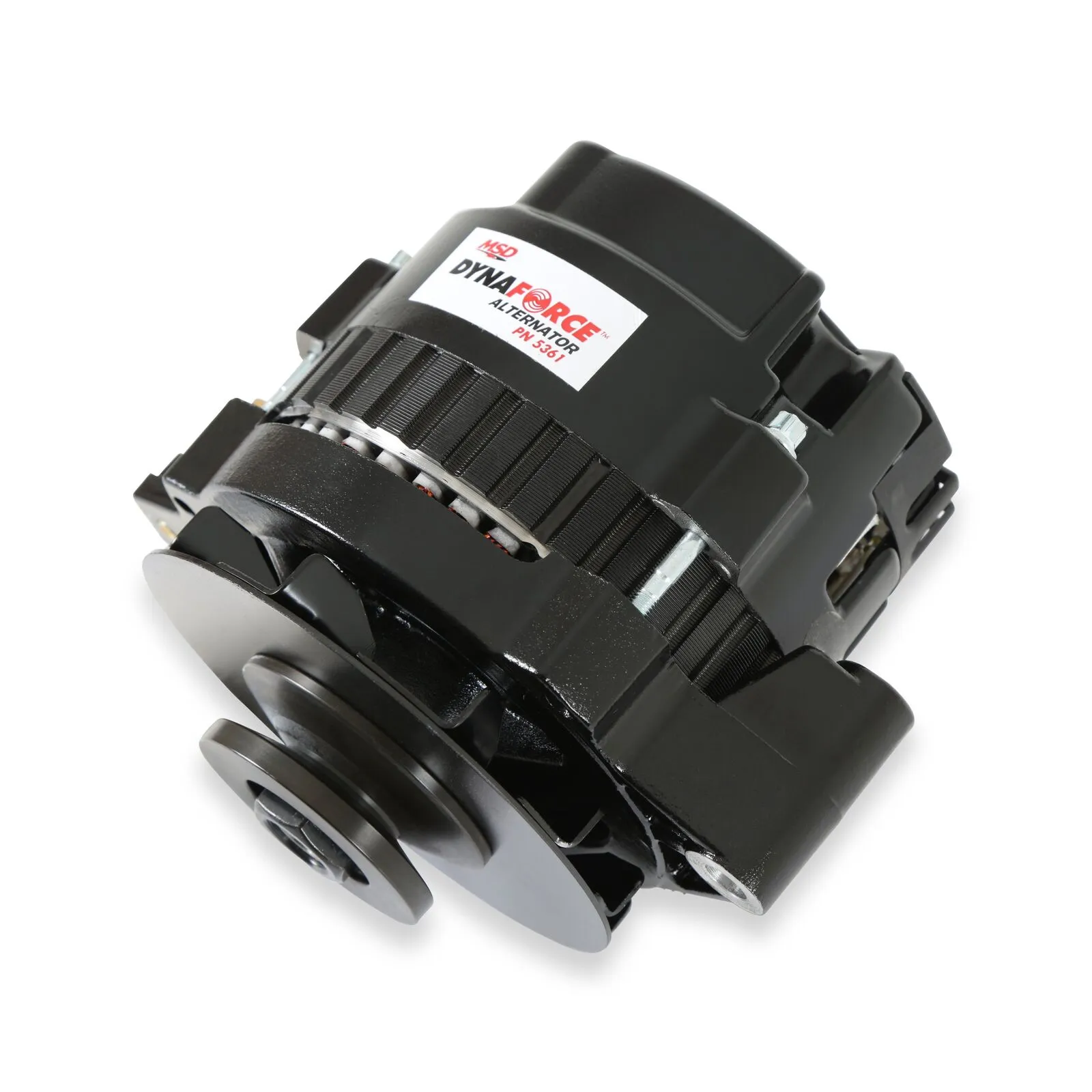 Whether you need a high output alternator to power your muscle car, street rod or touring machine, MSD has you covered with the DynaForce Alternator. For the street, MSD offers a 120 or 160 amp one-wire alternator. Not only are they designed for extreme output at higher rpm, but MSD balances the current output to keep your electronic components up to speed during idle and lower rpm operation as well. Both the 120 and 160 Amp alternators feature one-wire installation to keep things clean, easy and effective. The charge post of the alternators is moved to the side of the housing to allow for improved clearance to the block, plus a pulley baffle is included to ensure there is never any fan-to-belt issues (common at high rpm on lesser alternators).