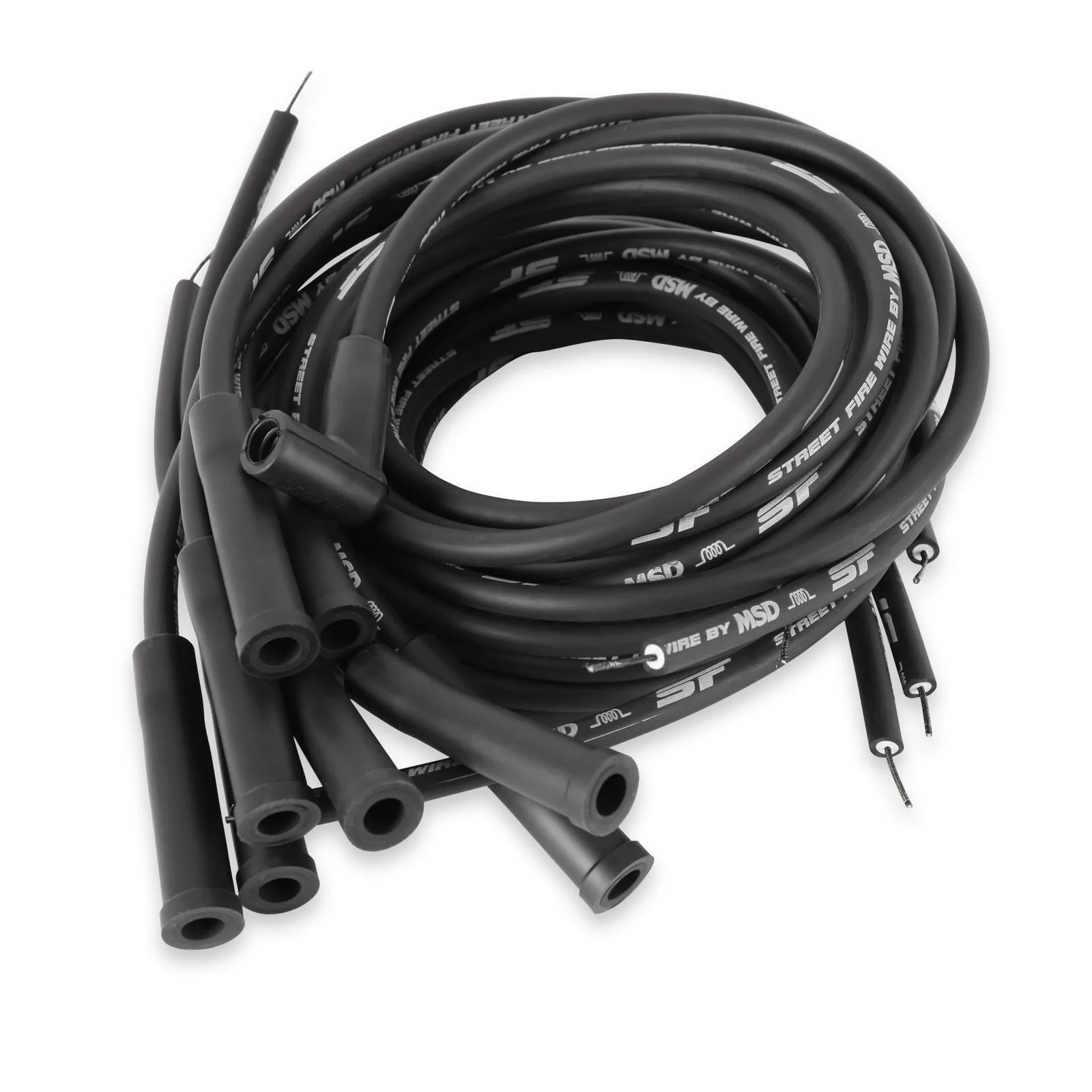 The Street Fire Spark Plug Wires feature a low resistance conductor that's wrapped in a sleek and durable black sleeve.