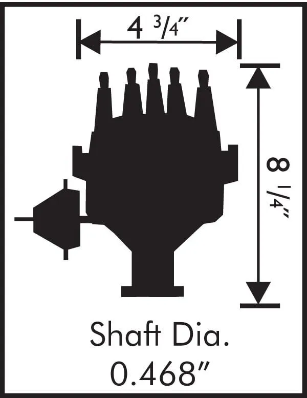 • Housing is 5/8” smaller in diameter than stock Ford distributors