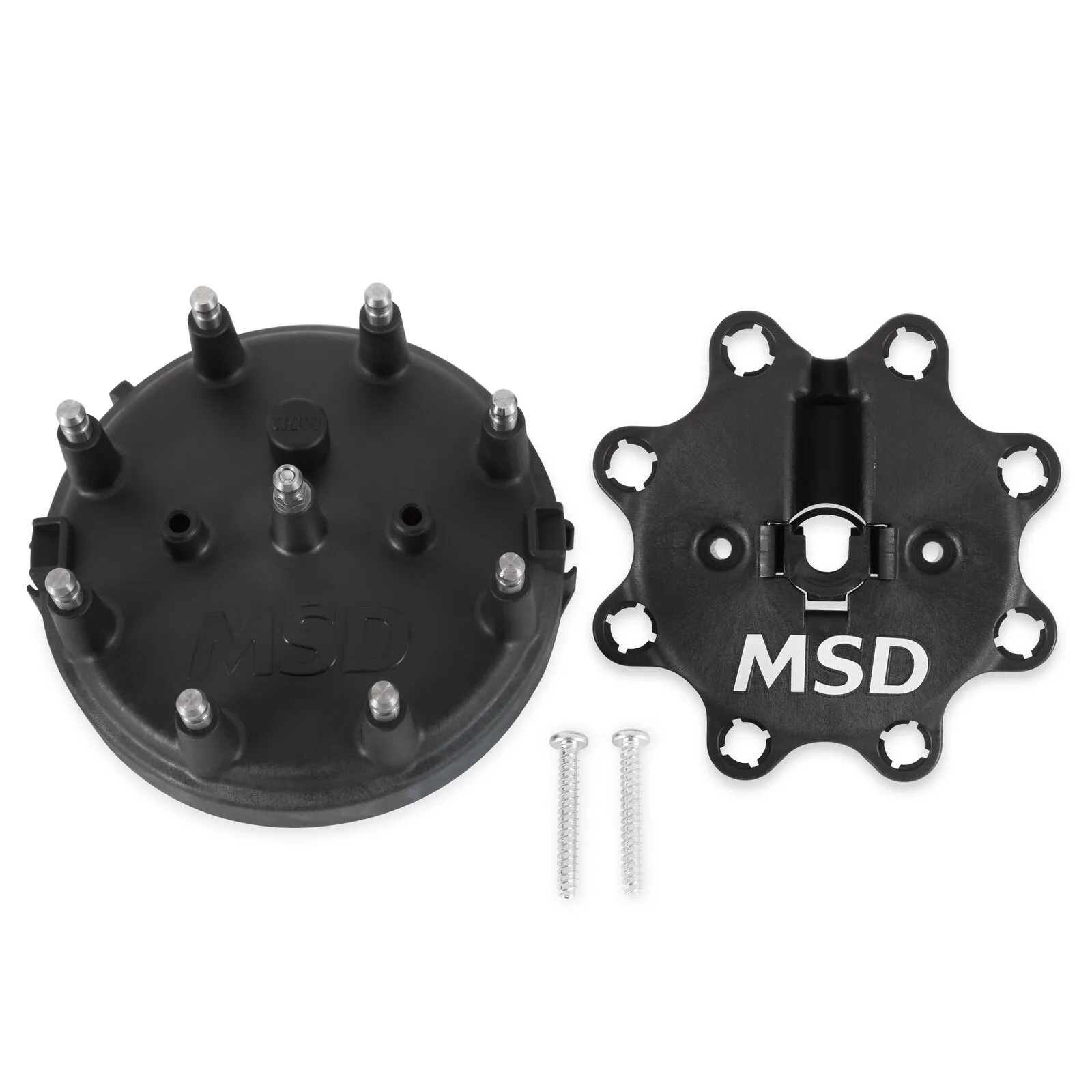 MSD molds our most popular V8 distributor caps in-house. These caps are injection molded from DuPont® Rynite material and feature spark plug-style terminals. These terminals offer improved locking connections and the Rynite material is extremely strong with excellent dielectric properties. Plus, most caps have an optional wire retainer that is supplied with these caps to lock the wires in place.