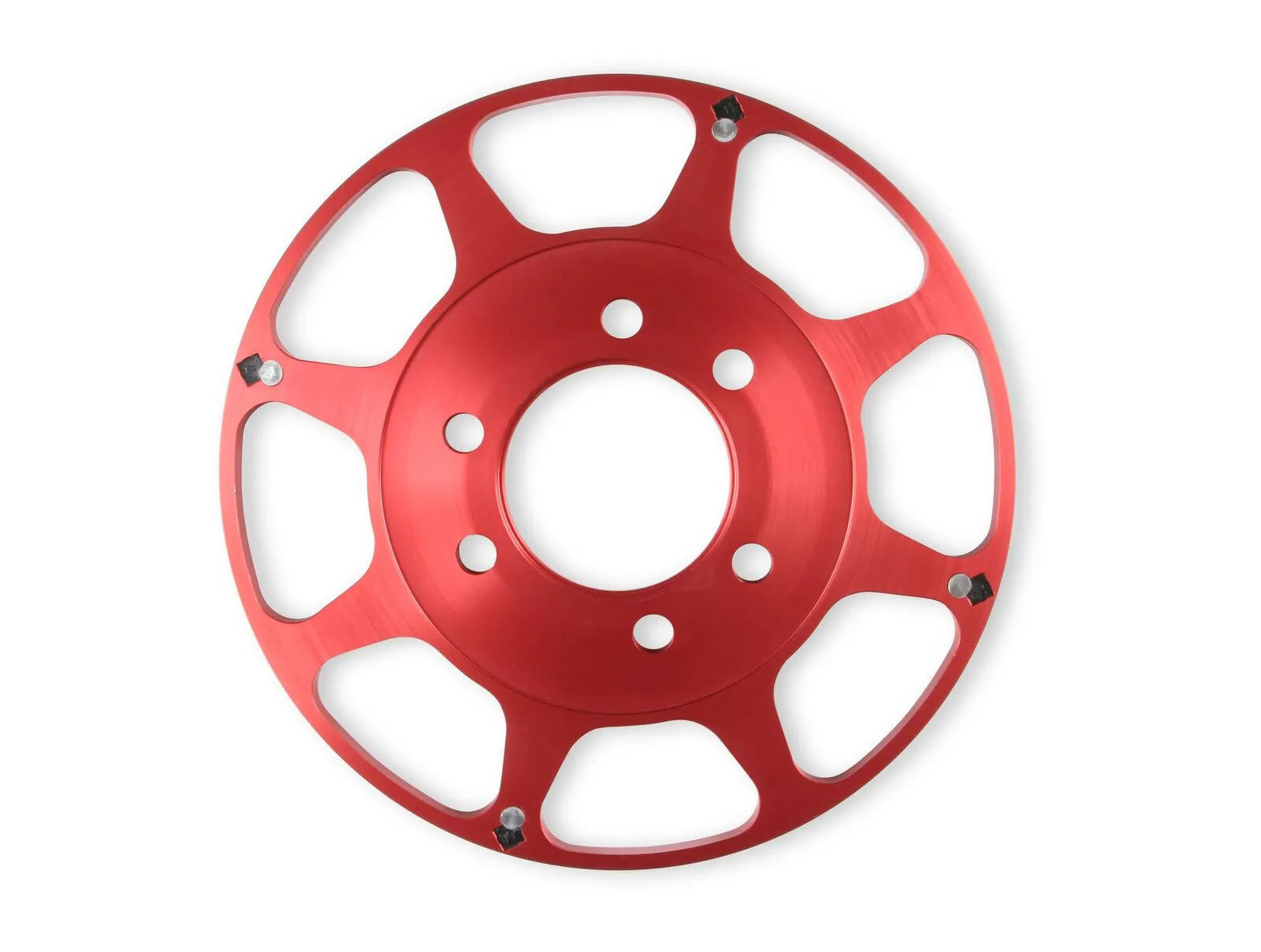 The MSD Flying Magnet Crank trigger is now available with a Hall-Effect sensor making it the most accurate way to trigger your EFI. The kit installs easily and uses rigid aluminum mounting bracketry and hardware that will not flex and cause timing fluctuations. Powerful magnets are embedded in a 3/8" thick aluminum trigger wheel that will send your EFI a clean signal for every firing.
