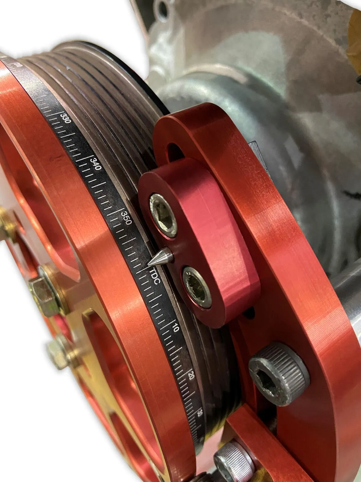 Upgrading to an MSD Flying Magnet Crank Trigger Kit will deliver the precise and reliable signal that a high-performance engine requires. This kit gives you the ability to control timing electronically through a Holley EFI ECU (or other standalone engine management system/ignition controller). At the heart of the kit is the 3-wire Hall-Effect Sensor that is easier to set up, less susceptible to EMI/RFI interference/noise, and less likely to have false signals than other methods (Distributors and VR Magnetic Sensors). In addition, they are less prone to mechanical failure since there are no wear parts. With the included high-quality timing pointer and the use of a direct bolt-on, degreed balancer (ATI 917302 or 918852), you'll be able to adjust timing in the precise increments required for your LS Engine.
