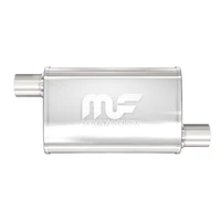 The MagnaFlow 4 X 9in. Oval Straight-Through Performance Exhaust Muffler 11235 is engineered to enhance your ride with a healthy helping of our signature exhaust sound and dyno-proven performance thanks to its free-flowing straight-through perforated stainless steel core wrapped in stainless steel mesh and acoustic fiber fill. The reversible, universal 2.25/2.25in. diameter inlet/outlet Straight-Through layout allows you to install it in whatever orientation and configuration you see fit. However, professional installation is highly recommended. Muffler 11235s weight-optimized 4x9x14in. oval-shaped body features a satin finish that elevates the overall aesthetics of your current exhaust setup. 11235 is made of durable, corrosion resistant stainless steel and produced using cutting-edge CNC precision robotic manufacturing techniques, all backed by MagnaFlow's limited lifetime construction warranty.