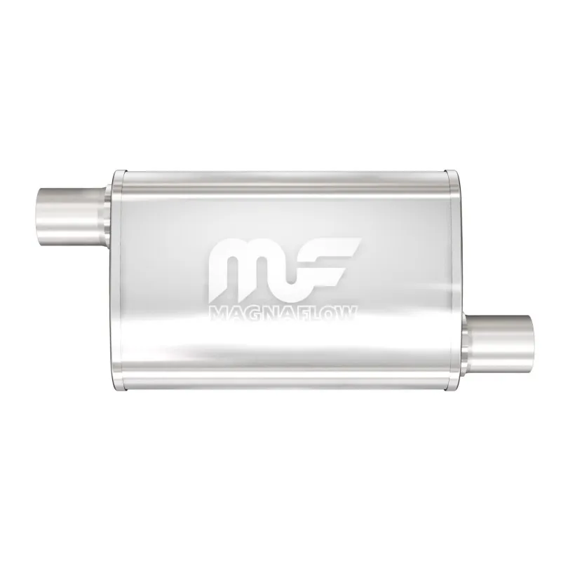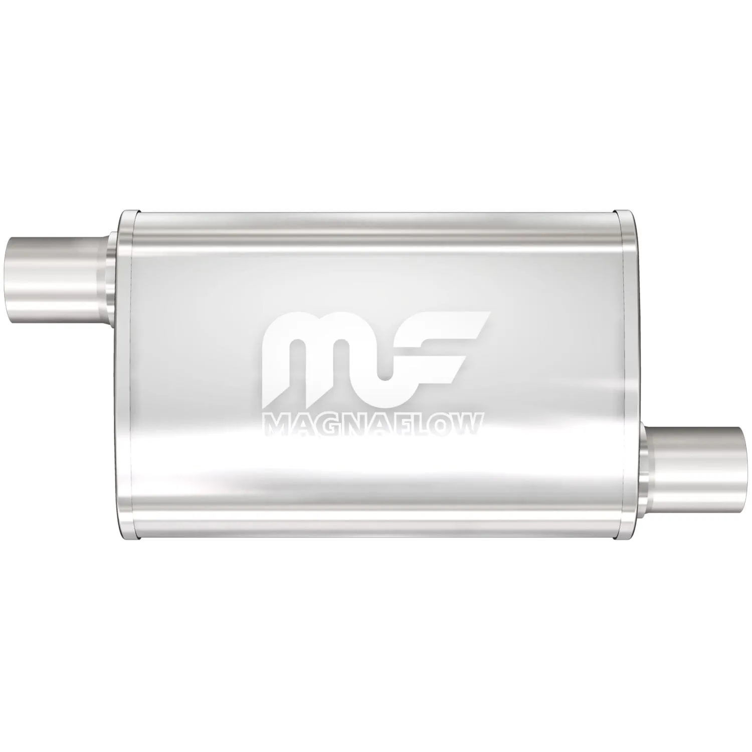 The MagnaFlow 4 X 9in. Oval Straight-Through Performance Exhaust Muffler 11236 is engineered to enhance your ride with a healthy helping of our signature exhaust sound and dyno-proven performance thanks to its free-flowing straight-through perforated stainless steel core wrapped in stainless steel mesh and acoustic fiber fill. The reversible, universal 2.5/2.5in. diameter inlet/outlet Straight-Through layout allows you to install it in whatever orientation and configuration you see fit. However, professional installation is highly recommended. Muffler 11236s weight-optimized 4x9x14in. oval-shaped body features a satin finish that elevates the overall aesthetics of your current exhaust setup. 11236 is made of durable, corrosion resistant stainless steel and produced using cutting-edge CNC precision robotic manufacturing techniques, all backed by MagnaFlow's limited lifetime construction warranty.