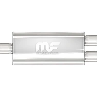 The MagnaFlow 5 X 8in. Oval Straight-Through Performance Exhaust Muffler 12158 is engineered to enhance your ride with a healthy helping of our signature exhaust sound and dyno-proven performance thanks to its free-flowing straight-through perforated stainless steel core wrapped in stainless steel mesh and acoustic fiber fill. The reversible, universal 2.5/2.5in. diameter inlet/outlet Straight-Through layout allows you to install it in whatever orientation and configuration you see fit. However, professional installation is highly recommended. Muffler 12158s weight-optimized 5x8x14in. oval-shaped body features a satin finish that elevates the overall aesthetics of your current exhaust setup. 12158 is made of durable, corrosion resistant stainless steel and produced using cutting-edge CNC precision robotic manufacturing techniques, all backed by MagnaFlow's limited lifetime construction warranty.