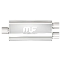 The MagnaFlow 5 X 8in. Oval Straight-Through Performance Exhaust Muffler 12388 is engineered to enhance your ride with a healthy helping of our signature exhaust sound and dyno-proven performance thanks to its free-flowing straight-through perforated stainless steel core wrapped in stainless steel mesh and acoustic fiber fill. The reversible, universal 3/2.5in. diameter inlet/outlet Straight-Through layout allows you to install it in whatever orientation and configuration you see fit. However, professional installation is highly recommended. Muffler 12388s weight-optimized 5x8x24in. oval-shaped body features a satin finish that elevates the overall aesthetics of your current exhaust setup. 12388 is made of durable, corrosion resistant stainless steel and produced using cutting-edge CNC precision robotic manufacturing techniques, all backed by MagnaFlow's limited lifetime construction warranty.