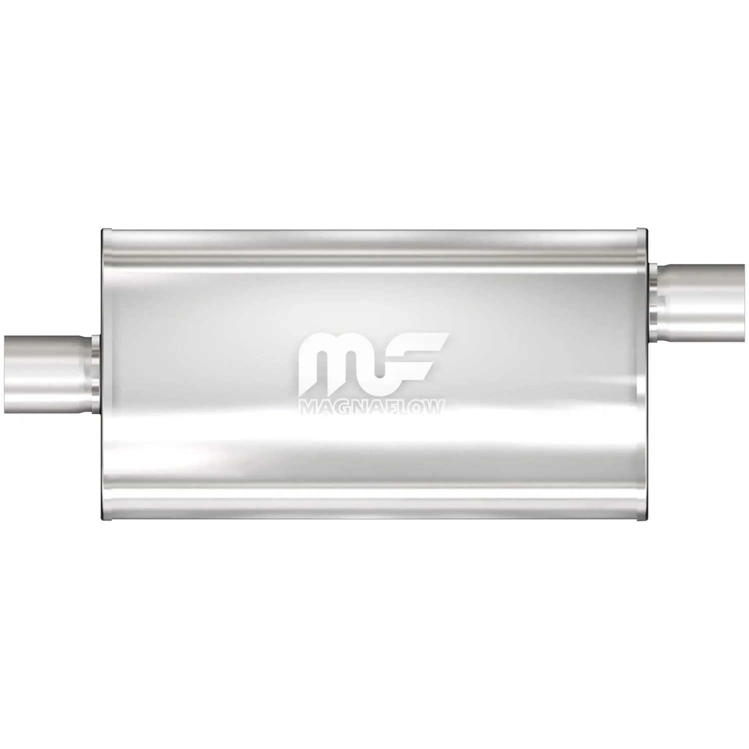 The MagnaFlow 5 X 11in. Oval Straight-Through Performance Exhaust Muffler 12586 is engineered to enhance your ride with a healthy helping of our signature exhaust sound and dyno-proven performance thanks to its free-flowing straight-through perforated stainless steel core wrapped in stainless steel mesh and acoustic fiber fill. The reversible, universal 2.5/2.5in. diameter inlet/outlet Straight-Through layout allows you to install it in whatever orientation and configuration you see fit. However, professional installation is highly recommended. Muffler 12586s weight-optimized 5x11x22in. oval-shaped body features a satin finish that elevates the overall aesthetics of your current exhaust setup. 12586 is made of durable, corrosion resistant stainless steel and produced using cutting-edge CNC precision robotic manufacturing techniques, all backed by MagnaFlow's limited lifetime construction warranty.