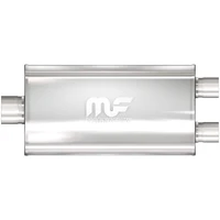 The MagnaFlow 5 X 11in. Oval Straight-Through Performance Exhaust Muffler 12588 is engineered to enhance your ride with a healthy helping of our signature exhaust sound and dyno-proven performance thanks to its free-flowing straight-through perforated stainless steel core wrapped in stainless steel mesh and acoustic fiber fill. The reversible, universal 3/2.5in. diameter inlet/outlet Straight-Through layout allows you to install it in whatever orientation and configuration you see fit. However, professional installation is highly recommended. Muffler 12588s weight-optimized 5x11x22in. oval-shaped body features a satin finish that elevates the overall aesthetics of your current exhaust setup. 12588 is made of durable, corrosion resistant stainless steel and produced using cutting-edge CNC precision robotic manufacturing techniques, all backed by MagnaFlow's limited lifetime construction warranty.