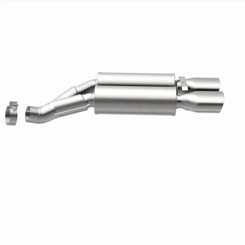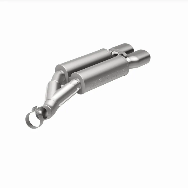 The MagnaFlow 2005-2006 Chrysler Crossfire Competition Series Axle-Back Performance Exhaust System 15054 brings an aggressive, attention-grabbing edge to the deep resonant exhaust note we're so well known for. This exhaust kit is designed to enhance your 3.2L 2005-2006 Chrysler Crossfire with dyno-proven performance made possible thanks to fast-flowing mandrel bent 3in. main piping and 2 Straight-Through mufflers ending in a Dual Center Rear exit with 3.5 x 5.5in. Polished Welded-On Double Wall Straight Cut Rolled Edge tips featuring a sporty finish. The exhaust system's axle-back layout replaces your ride's exhaust system from near the rear axle on back. Exhaust system 15054 is engineered to make your vehicle's engine produce Aggressive exterior and Moderate interior sound levels, befitting its competition-oriented design. 15054's direct-fit design makes installation a breeze thanks to the use of advanced 3D scanning techniques. This performance exhaust system is made of 100% durable and corrosion-resistant stainless steel and produced using CNC precision robotic manufacturing, all backed by MagnaFlow's limited lifetime warranty. Please check to ensure compliance with local noise regulations.