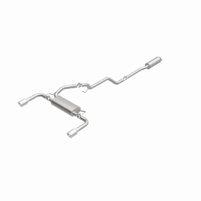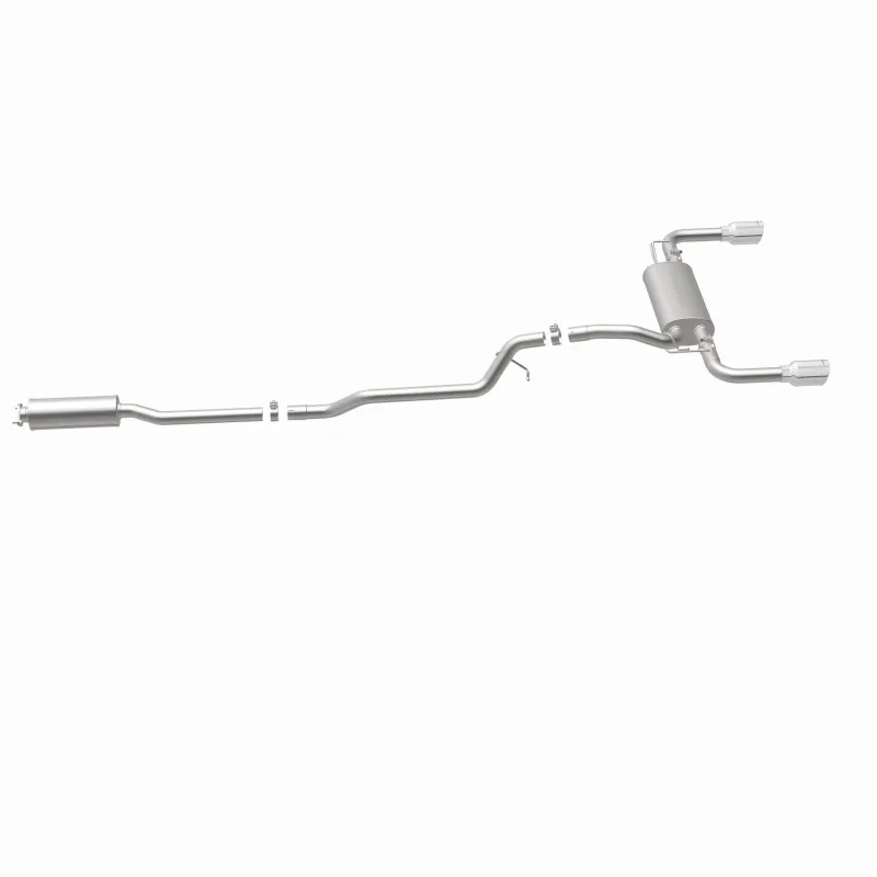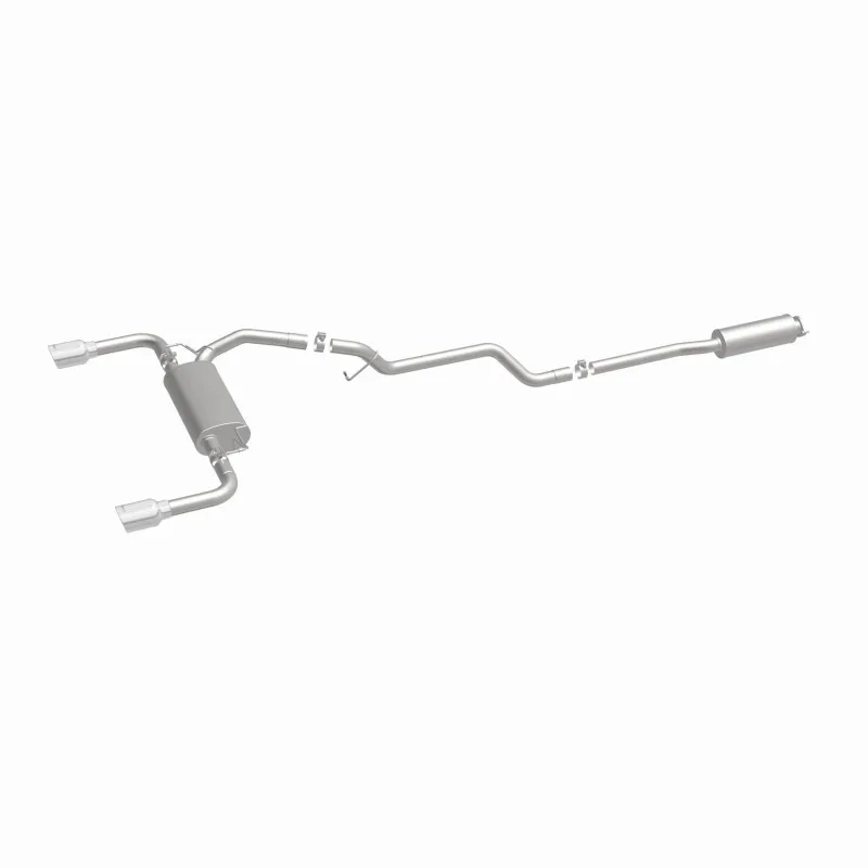 The MagnaFlow 2013-2019 Ford Escape Street Series Cat-Back Performance Exhaust System 15203 brings out the personality of your 1.6L, 2.0L 2013-2019 Ford Escape with our signature resonant, powerful engine tone and dyno-proven performance. Thanks to its fast-flowing, mandrel bent 2.25in. main piping and 2 Straight-Through mufflers ending in a Dual Split Rear exit with 4in. Polished Welded-On Double Wall Angle Cut Rolled Edge tips, this Ford Escape exhaust kit has the performance chops to match its sporty sound and appearance. Upgrade your ride to the next level with an exhaust that has the pipes to put other Ford Escape's to shame. With this system your vehicle will be producing Moderate exterior and Mild interior sound levels while leaving other cars and trucks feeling envious at every stoplight. Exhaust kit 15203 features a cat-back layout that replaces your ride's stock exhaust components from near the catalytic converter on back. Extensive 3D scanning during development has resulted in a direct-fit design that you can easily install yourself. 15203 is produced using CNC precision robotic manufacturing techniques and is backed by MagnaFlow's 1-year limited finish warranty and limited lifetime construction warranty.