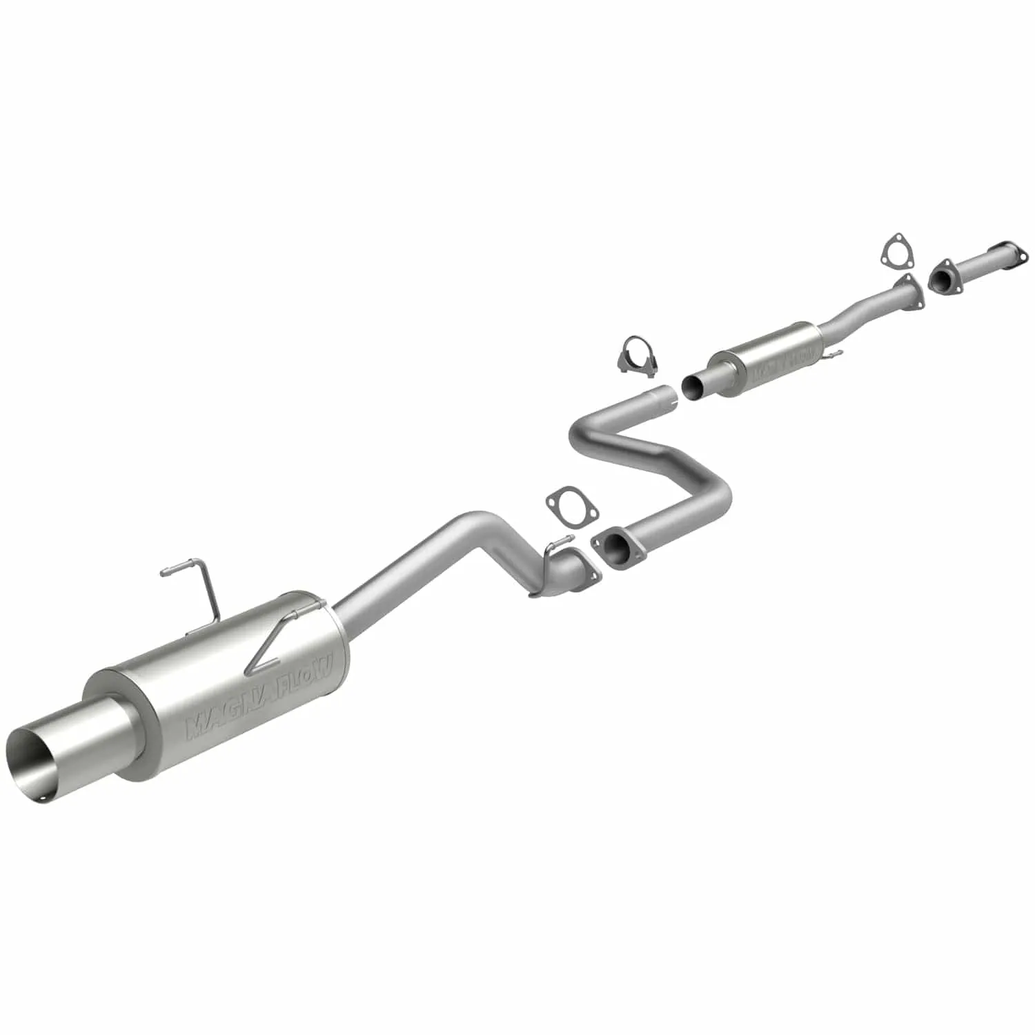 The MagnaFlow 1992-2000 Honda Civic Street Series Cat-Back Performance Exhaust System 15646 brings out the personality of your 1.6L 1992-2000 Honda Civic with our signature resonant, powerful engine tone and dyno-proven performance. Thanks to its fast-flowing, mandrel bent 2.25in. main piping and 2 Straight-Through mufflers ending in a Single Straight Passenger Side Rear exit with 4in. Polished Welded-On Single Wall Straight Cut Cut Edge tips, this Honda Civic exhaust kit has the performance chops to match its sporty sound and appearance. Upgrade your ride to the next level with an exhaust that has the pipes to put other Honda Civic's to shame. With this system your vehicle will be producing Moderate exterior and Mild interior sound levels while leaving other cars and trucks feeling envious at every stoplight. Exhaust kit 15646 features a cat-back layout that replaces your ride's stock exhaust components from near the catalytic converter on back. Extensive 3D scanning during development has resulted in a direct-fit design that you can easily install yourself. 15646 is produced using CNC precision robotic manufacturing techniques and is backed by MagnaFlow's 1-year limited finish warranty and limited lifetime construction warranty.