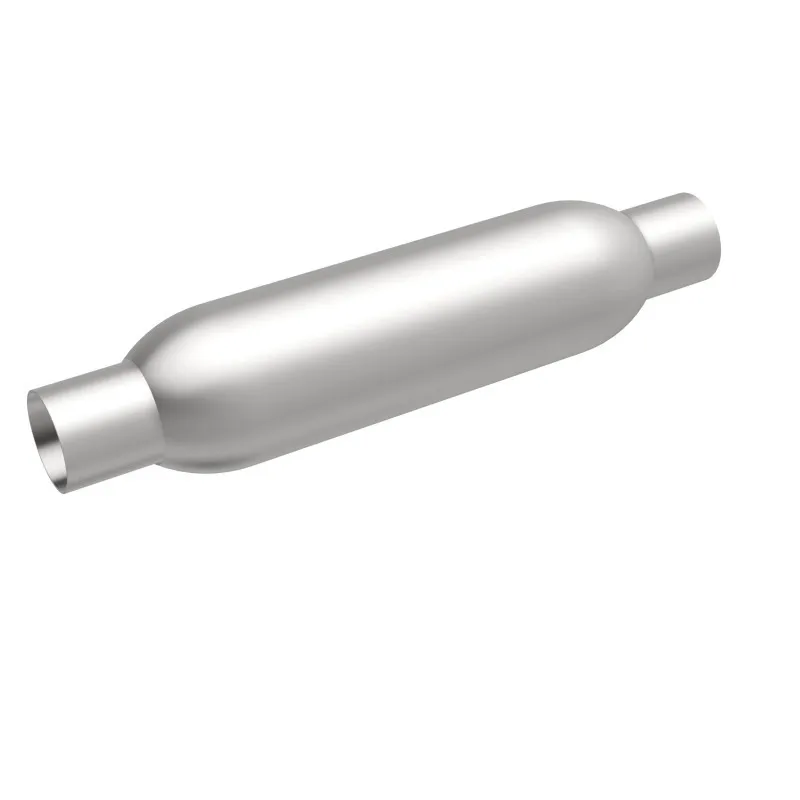The MagnaFlow 3.5in. Round Glasspack Performance Exhaust Muffler 18114 enhances your ride with the deep, classic sound that glasspack mufflers are known for. The round muffler body features a free-flowing reversible straight-through 2/2in. diameter configuration and single stage packing with a satin finish. This weight-optimized glasspack muffler is engineered to bring out the inner hot rod in your ride with plenty of volume and dyno-proven performance, so please check to ensure compliance with local noise regulations. 18114 offers flexibility when it comes to installation thanks to its universal design, however, professional installation is recommended. Muffler 18114 is made of corrosion resistant aluminized steel and produced using CNC precision robotic manufacturing techniques, all backed by MagnaFlow's 90-day limited construction warranty.