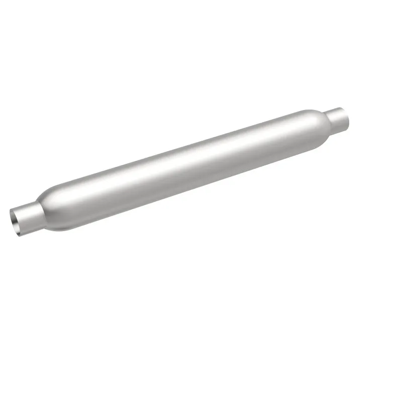 The MagnaFlow 3.5in. Round Glasspack Performance Exhaust Muffler 18144 enhances your ride with the deep, classic sound that glasspack mufflers are known for. The round muffler body features a free-flowing reversible straight-through 2/2in. diameter configuration and single stage packing with a satin finish. This weight-optimized glasspack muffler is engineered to bring out the inner hot rod in your ride with plenty of volume and dyno-proven performance, so please check to ensure compliance with local noise regulations. 18144 offers flexibility when it comes to installation thanks to its universal design, however, professional installation is recommended. Muffler 18144 is made of corrosion resistant aluminized steel and produced using CNC precision robotic manufacturing techniques, all backed by MagnaFlow's 90-day limited construction warranty.