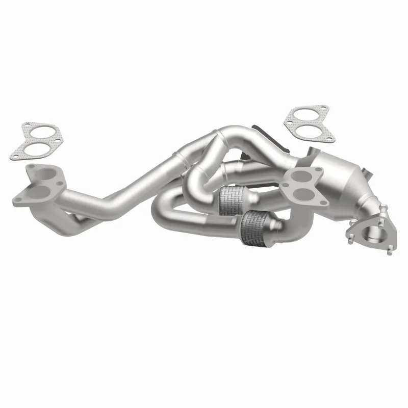 MagnaFlow specializes in superior catalytic converter and exhaust technology and has spent the past 30+ years earning its reputation as a global market leader. American engineered and manufactured, MagnaFlow Catalytic Converters combine efficient industrial design to produce a product that exceeds, rather than meets, the highest standards of product performance and efficiency in the industry. MagnaFlow uses both Ceramic and Metallic substrates with different combinations of cell density and wall thickness to meet vehicle specific requirements. MagnaFlow Direct-Fit Catalytic Converters are designed for easy bolt-on installation for the Professional Installer. Each is designed to exact the original equipment specifications. While the majority of the Direct-Fit Catalytic Converter products do not require welding, cutting or bending, limited applications may require additional welding for optimal installation. All Federal catalytic converters meet EPA requirements. Federal Catalytic Converters are not legal for sale, installation or use on vehicles registered in the state of California. All California State Catalytic converters are CARB compliant. Converters in this catalog are based on Executive Orders issued by the California Air Resource Board and must be used in accordance with this information. In California, it is illegal to select a catalytic converter for installation based solely on vehicle weight and engine size. * Stainless steel construction * Formulated for Gas and Diesel Applications