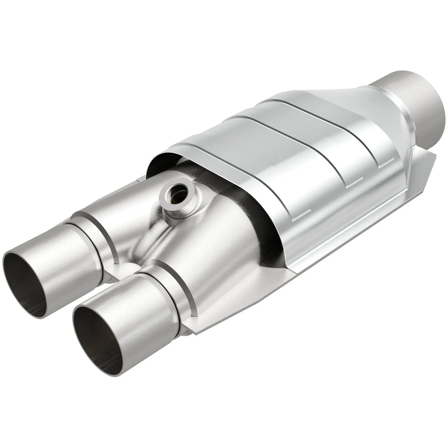MagnaFlow specializes in superior catalytic converter and exhaust technology and has spent the past 30+ years earning its reputation as a global market leader. American engineered and manufactured, MagnaFlow Catalytic Converters combine efficient industrial design to produce a product that exceeds, rather than meets, the highest standards of product performance and efficiency in the industry. MagnaFlow uses both Ceramic and Metallic substrates with different combinations of cell density and wall thickness to meet vehicle specific requirements. MagnaFlow Universal Catalytic Converters form the basic building blocks for a comprehensive line of direct-fit applications. The main benefit of the universal catalytic converter is that one unit may cover a wide variety of vehicle makes and models. Installing universal converters often requires the use of welding, cutting and tube bending equipment that is readily available to most professional installers. All Federal catalytic converters meet EPA requirements. Federal Catalytic Converters are not legal for sale, installation or use on vehicles registered in the state of California. All California State Catalytic converters are CARB compliant. Converters in this catalog are based on Executive Orders issued by the California Air Resource Board and must be used in accordance with this information. In California, it is illegal to select a catalytic converter for installation based solely on vehicle weight and engine size. * Stainless steel construction * Formulated for Gas and Diesel Applications