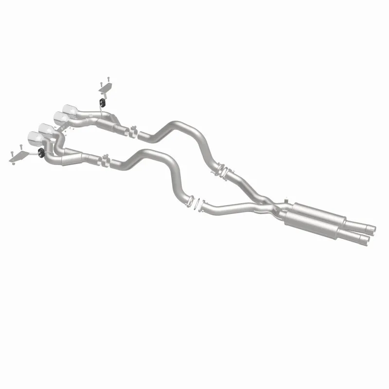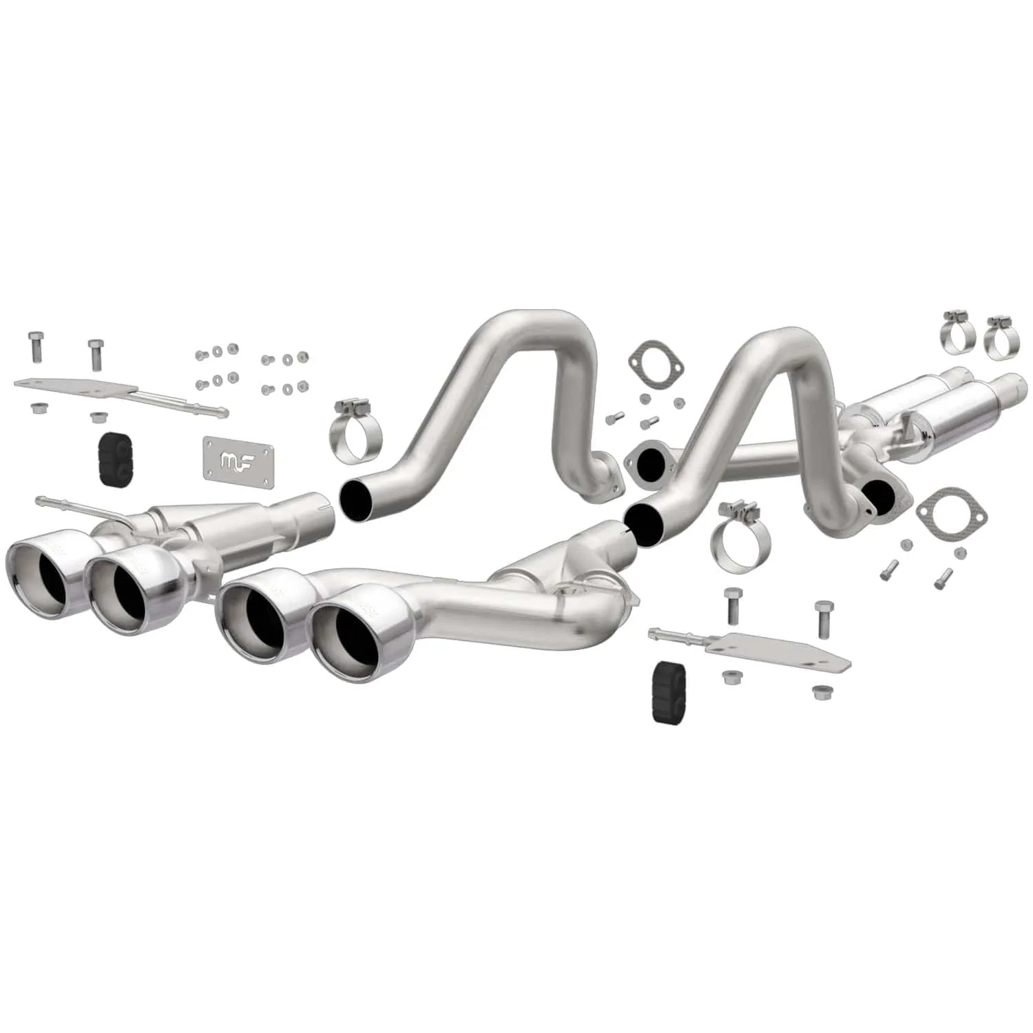 The MagnaFlow 2000-2004 Chevrolet Corvette Competition Series Cat-Back Performance Exhaust System 15281 brings an aggressive, attention-grabbing edge to the deep resonant exhaust note we're so well known for. This exhaust kit is designed to enhance your 5.7L 2000-2004 Chevrolet Corvette with dyno-proven performance made possible thanks to fast-flowing mandrel bent 2.5in. main piping and 2 Straight-Through mufflers ending in a Quad Center Rear exit with 4in. Polished Welded-On Double Wall Angle Cut Rolled Edge tips featuring a sporty finish. The exhaust system's cat-back layout replaces your ride's exhaust system from near the catalytic converter on back. Exhaust system 15281 is engineered to make your vehicle's engine produce Aggressive exterior and Moderate interior sound levels, befitting its competition-oriented design. 15281's direct-fit design makes installation a breeze thanks to the use of advanced 3D scanning techniques. This performance exhaust system is made of 100% durable and corrosion-resistant stainless steel and produced using CNC precision robotic manufacturing, all backed by MagnaFlow's limited lifetime warranty. Please check to ensure compliance with local noise regulations.