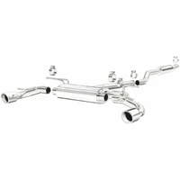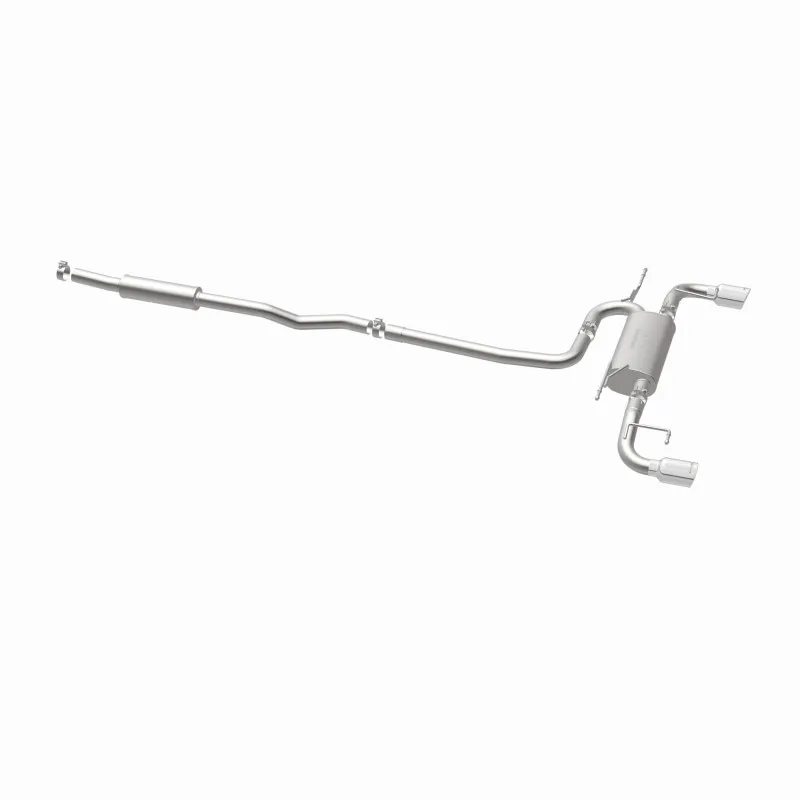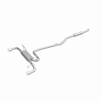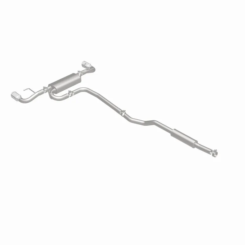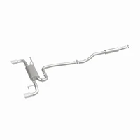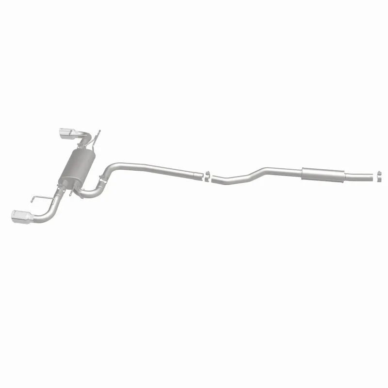 The MagnaFlow 2014-2018 Mazda 3 Street Series Cat-Back Performance Exhaust System 15294 brings out the personality of your 2.0L 2014-2018 Mazda 3 with our signature resonant, powerful engine tone and dyno-proven performance. Thanks to its fast-flowing, mandrel bent 2.5in. main piping and 2 Straight-Through mufflers ending in a Dual Split Rear exit with 4in. Polished Welded-On Double Wall Angle Cut Rolled Edge tips, this Mazda 3 exhaust kit has the performance chops to match its sporty sound and appearance. Upgrade your ride to the next level with an exhaust that has the pipes to put other Mazda 3's to shame. With this system your vehicle will be producing Moderate exterior and Mild interior sound levels while leaving other cars and trucks feeling envious at every stoplight. Exhaust kit 15294 features a cat-back layout that replaces your ride's stock exhaust components from near the catalytic converter on back. Extensive 3D scanning during development has resulted in a direct-fit design that you can easily install yourself. 15294 is produced using CNC precision robotic manufacturing techniques and is backed by MagnaFlow's 1-year limited finish warranty and limited lifetime construction warranty.