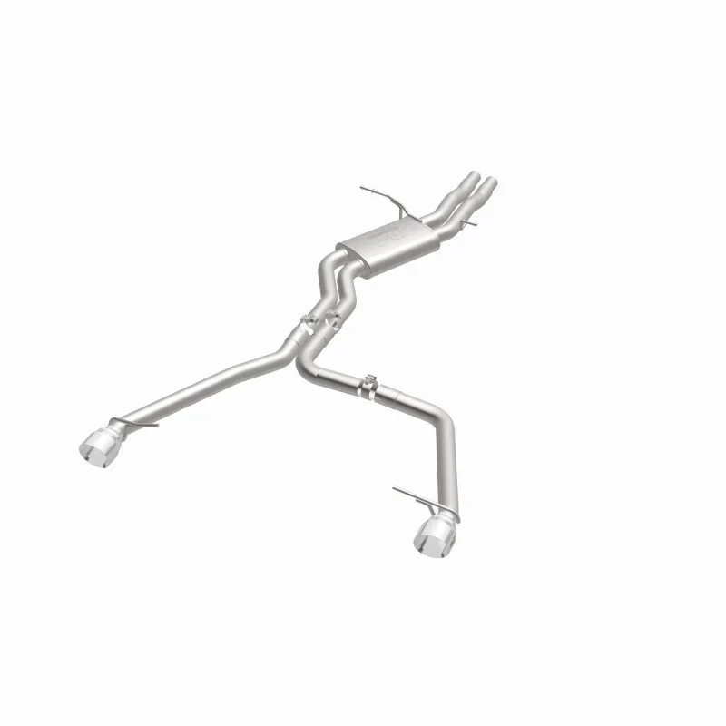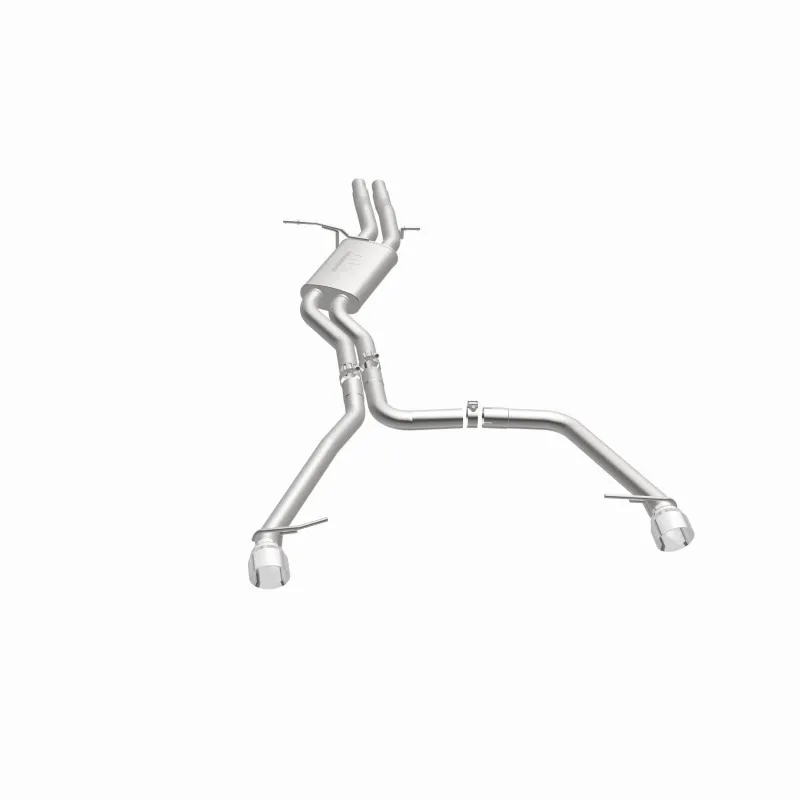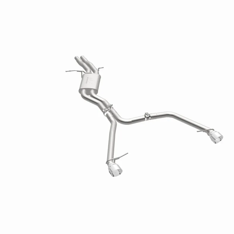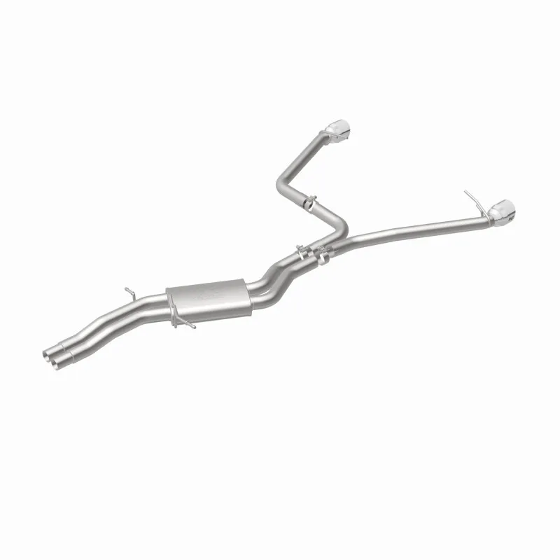 The MagnaFlow 2014-2017 Audi Q5 Touring Series Cat-Back Performance Exhaust System 15378 is the perfect partner for your 3.0L 2014-2017 Audi Q5 to take on a grand tour or a weekend cruise thanks to the powerful, resonant exhaust note and dyno-proven performance it brings to the table. This durable, corrosion resistant stainless steel exhaust kit is engineered to conquer the miles with ease while enhancing your driving experience with Moderate exterior and Mild interior sound levels generated through its fast-flowing, mandrel bent 2.5in. main piping and 1 Straight-Through muffler that terminate in a Dual Split Rear exit with 4.5in. Polished Welded-On Double Wall Angle Cut Folded Edge tips. 15378 features a cat-back layout design to replace your import's stock exhaust components from the catalytic converter on back. This Audi Q5 exhaust system is compatible with 2014-2017 engines. The use of extensive 3D scans made during the development process has resulted in an easy-to-install, direct-fit design that fits your Audi Q5 like a glove. 15378 is produced using CNC precision robotic manufacturing techniques and is backed by MagnaFlow's limited lifetime construction warranty.