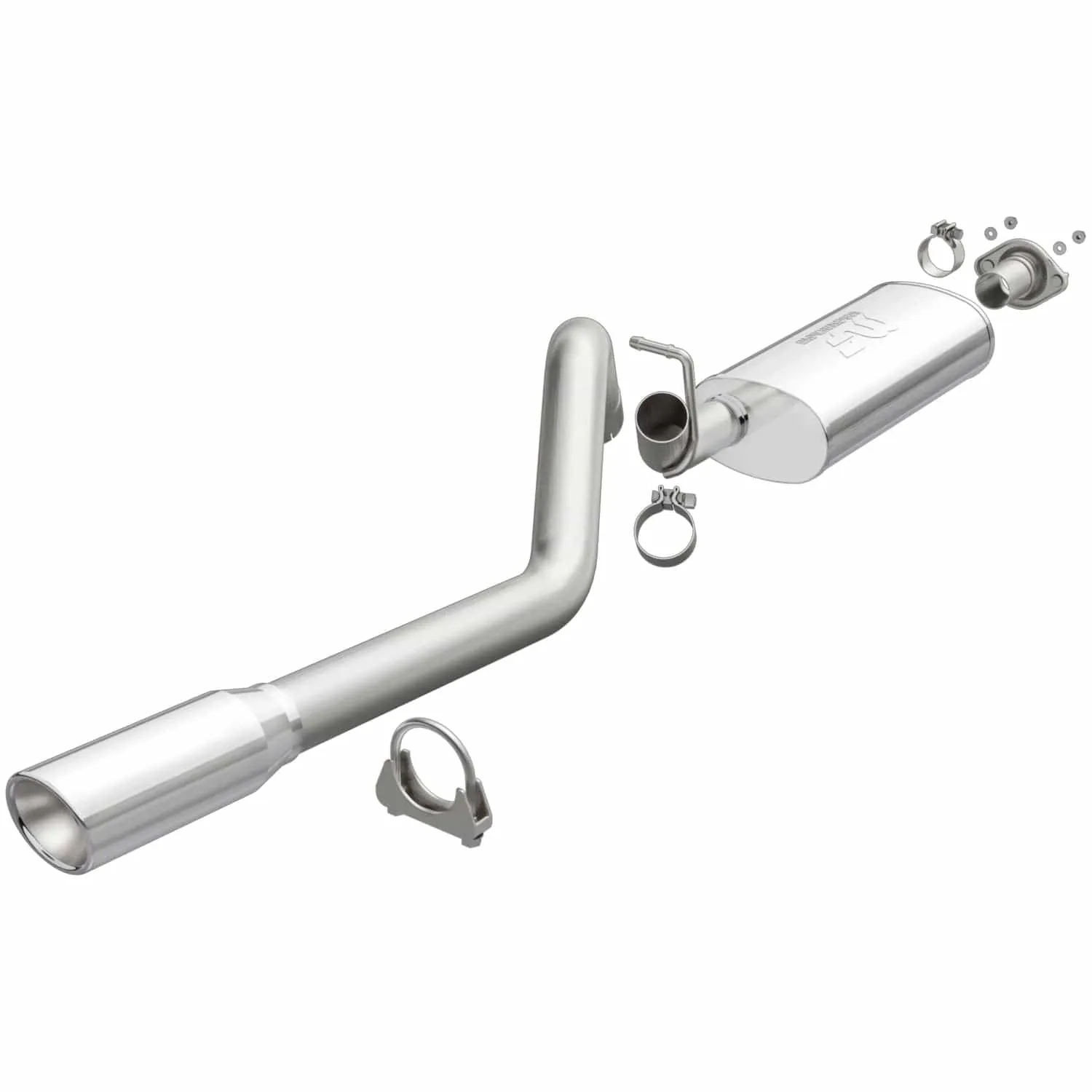 The MagnaFlow 1996-2001 Jeep Cherokee Street Series Cat-Back Performance Exhaust System 16464 brings out the personality of your 2.5L, 4.0L 1996-2001 Jeep Cherokee with our signature resonant, powerful engine tone and dyno-proven performance. Thanks to its fast-flowing, mandrel bent 2.5in. main piping and 1 Straight-Through mufflers ending in a Single Straight Passenger Side Rear exit with 3.5in. Polished Welded-On Double Wall Angle Cut Rolled Edge tips, this Jeep Cherokee exhaust kit has the performance chops to match its sporty sound and appearance. Upgrade your ride to the next level with an exhaust that has the pipes to put other Jeep Cherokee's to shame. With this system your vehicle will be producing Moderate exterior and Mild interior sound levels while leaving other cars and trucks feeling envious at every stoplight. Exhaust kit 16464 features a cat-back layout that replaces your ride's stock exhaust components from near the catalytic converter on back. Extensive 3D scanning during development has resulted in a direct-fit design that you can easily install yourself. 16464 is produced using CNC precision robotic manufacturing techniques and is backed by MagnaFlow's 1-year limited finish warranty and limited lifetime construction warranty.
