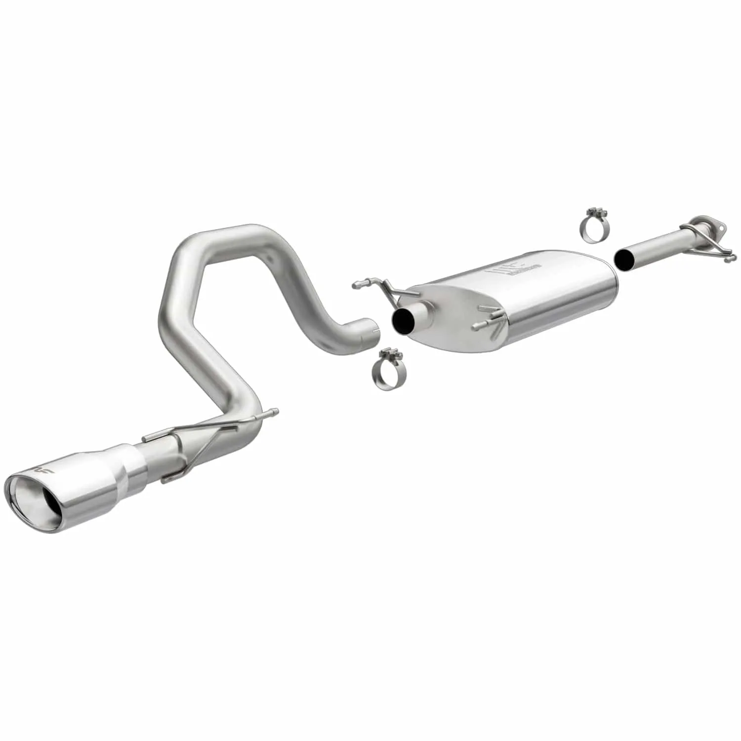 The MagnaFlow 2007-2014 Toyota FJ Cruiser Street Series Cat-Back Performance Exhaust System 16649 brings out the personality of your 4.0L 2007-2014 Toyota FJ Cruiser with our signature resonant, powerful engine tone and dyno-proven performance. Thanks to its fast-flowing, mandrel bent 2.5in. main piping and 1 Straight-Through mufflers ending in a Single Straight passenger Side Rear exit with 3.75 x 4.75in. Polished Welded-On Double Wall Angle Cut Rolled Edge tips, this Toyota FJ Cruiser exhaust kit has the performance chops to match its sporty sound and appearance. Upgrade your ride to the next level with an exhaust that has the pipes to put other Toyota FJ Cruiser's to shame. With this system your vehicle will be producing Moderate exterior and Mild interior sound levels while leaving other cars and trucks feeling envious at every stoplight. Exhaust kit 16649 features a cat-back layout that replaces your ride's stock exhaust components from near the catalytic converter on back. Extensive 3D scanning during development has resulted in a direct-fit design that you can easily install yourself. 16649 is produced using CNC precision robotic manufacturing techniques and is backed by MagnaFlow's 1-year limited finish warranty and limited lifetime construction warranty.